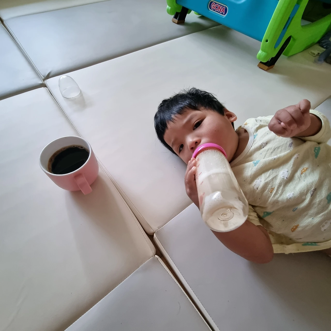 요한이가 일어나자마자 아내가 전날 알려준 대로 분유를 타 주었다. 나는 옆에서 커피를 마셨다.