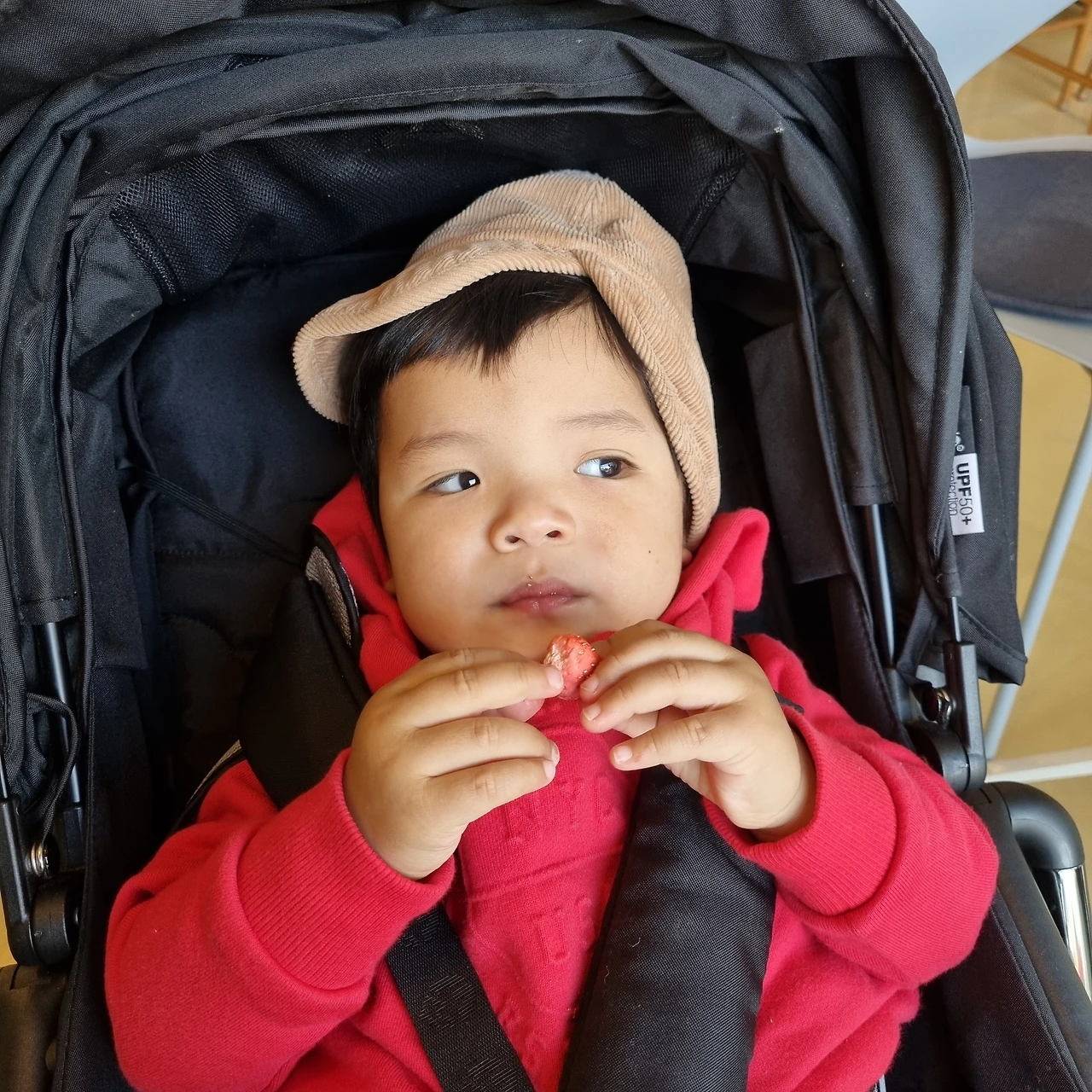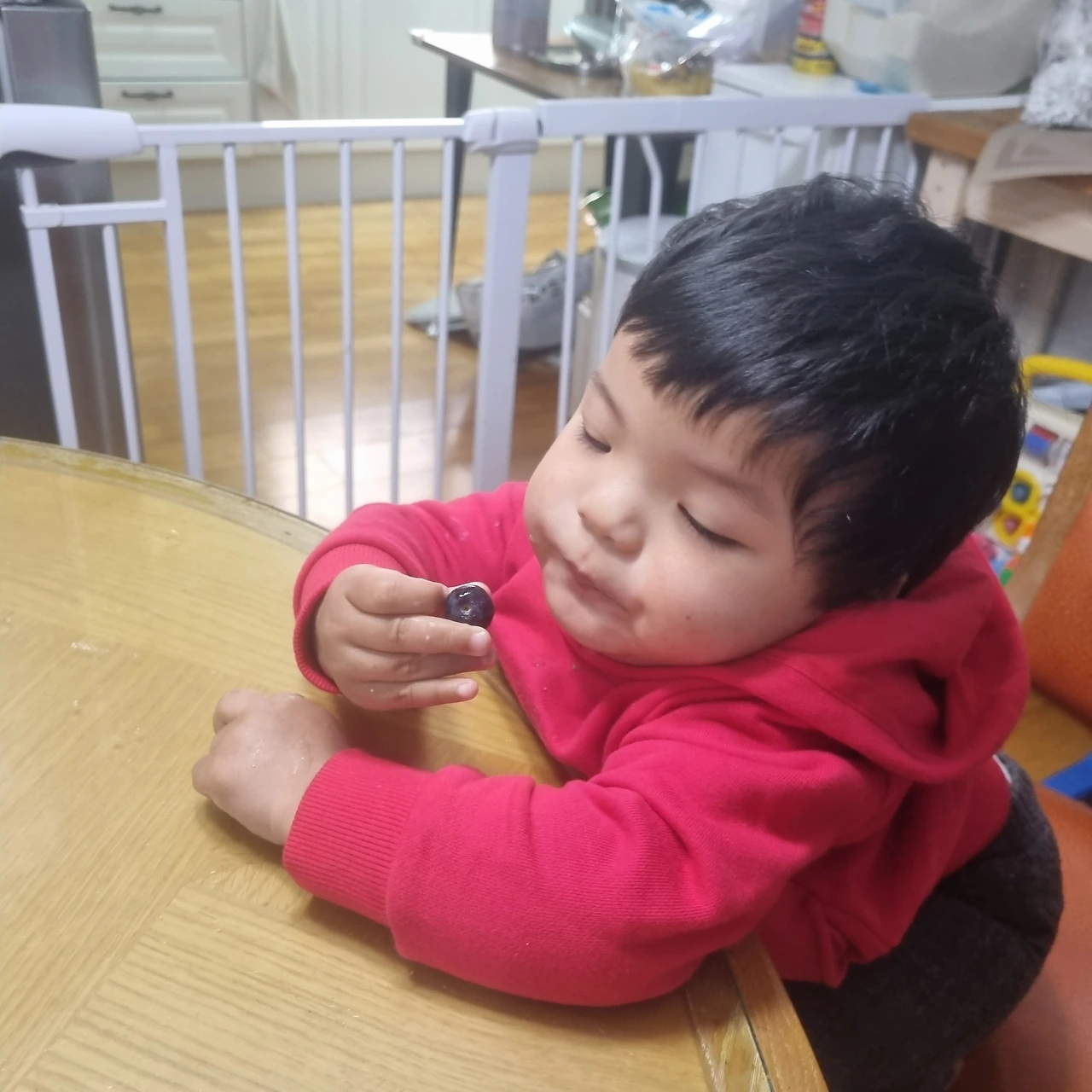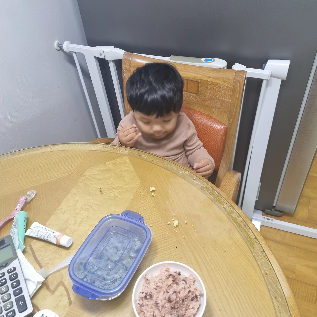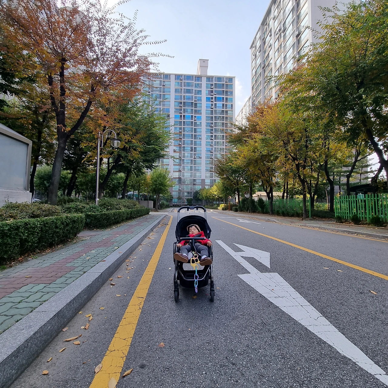 9시에 분유를 먹이고, 10시에 샤인머스캣과 삶은달걀 흰자를 먹이고, 12시에 아내가 준비해 놓은 점심을 데워 먹이고, 유모차에 태우고 산책 나갔다.