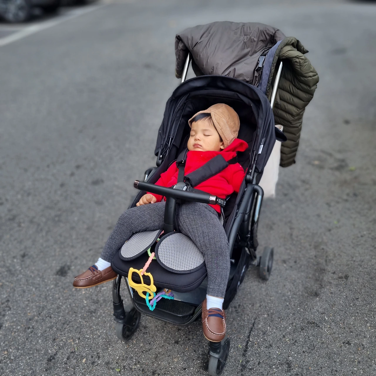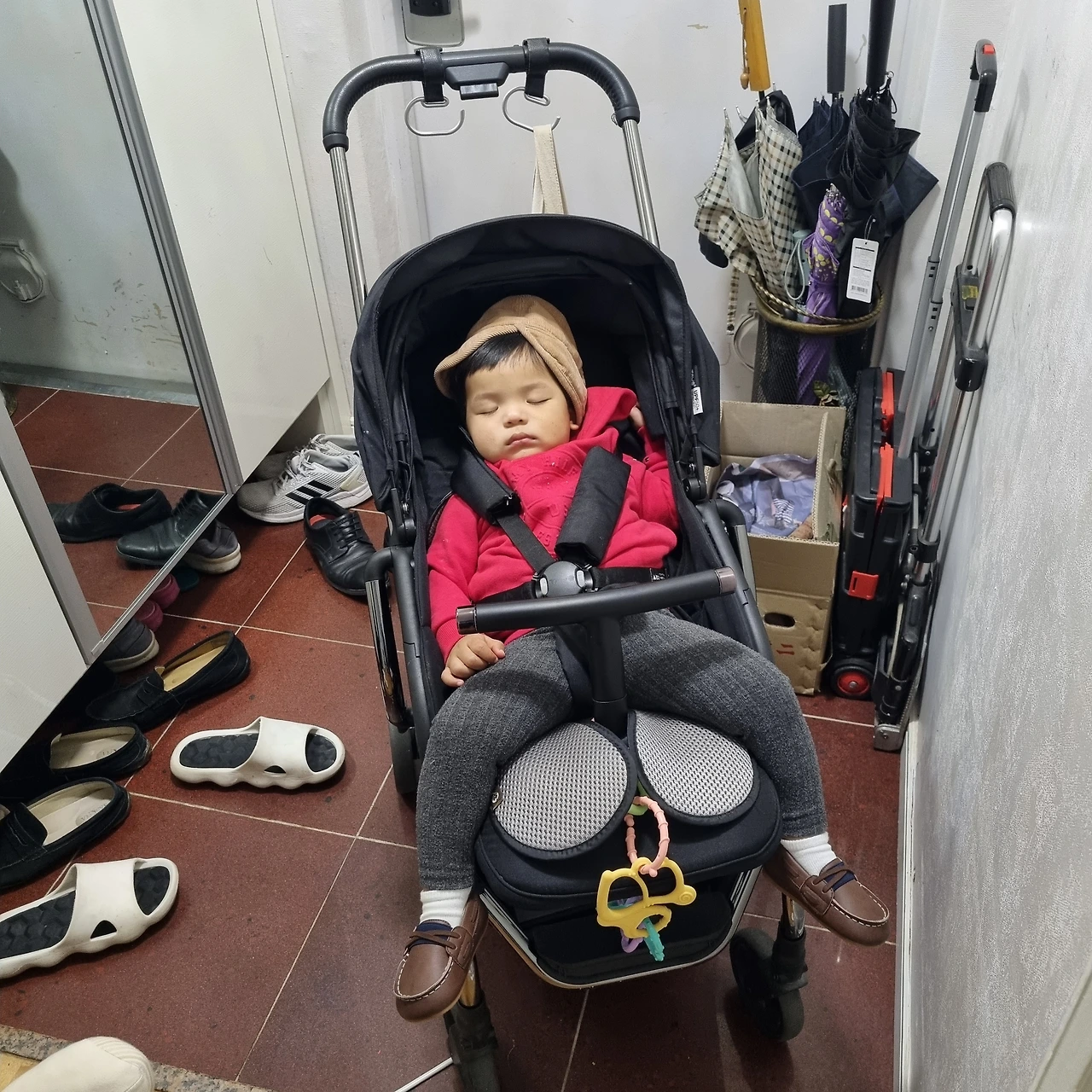 돌아오는 길 잠들었다. 유모차 타고 밖에 나갔다가 졸리면 유모차에서 잠이 든다.