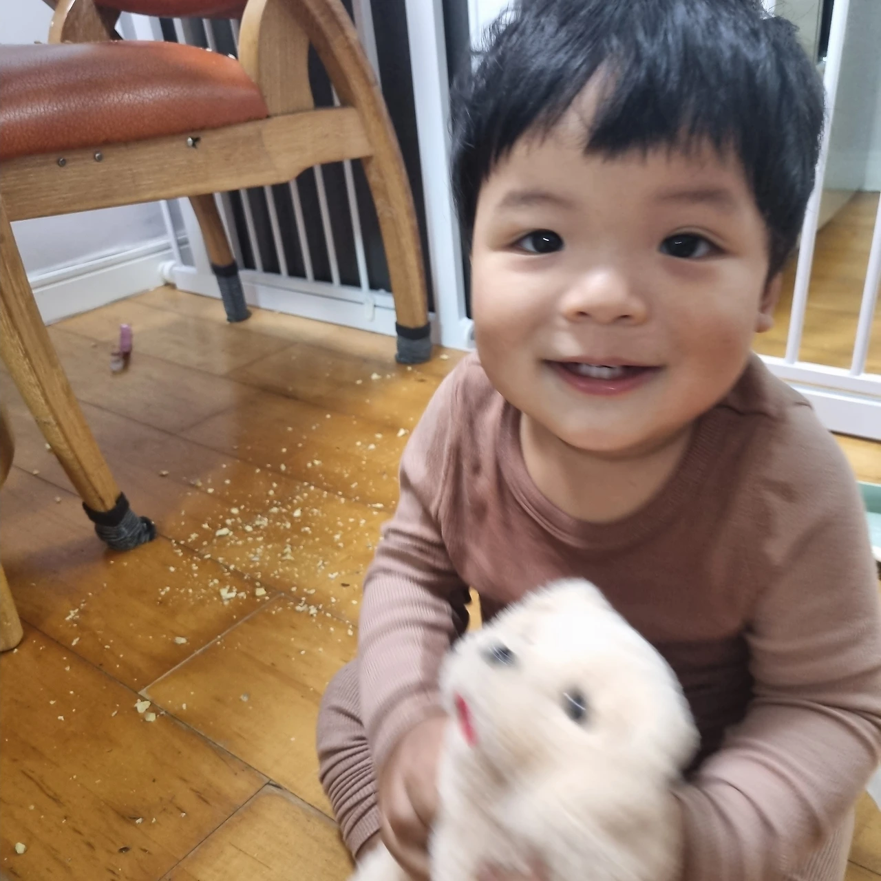 물을 옷을 다 적시며 먹고, 책상 위 밤통을 먹겠다고 열어 밤을 다 쏟아놓고, 장난감 강아지를 가지고 논다.