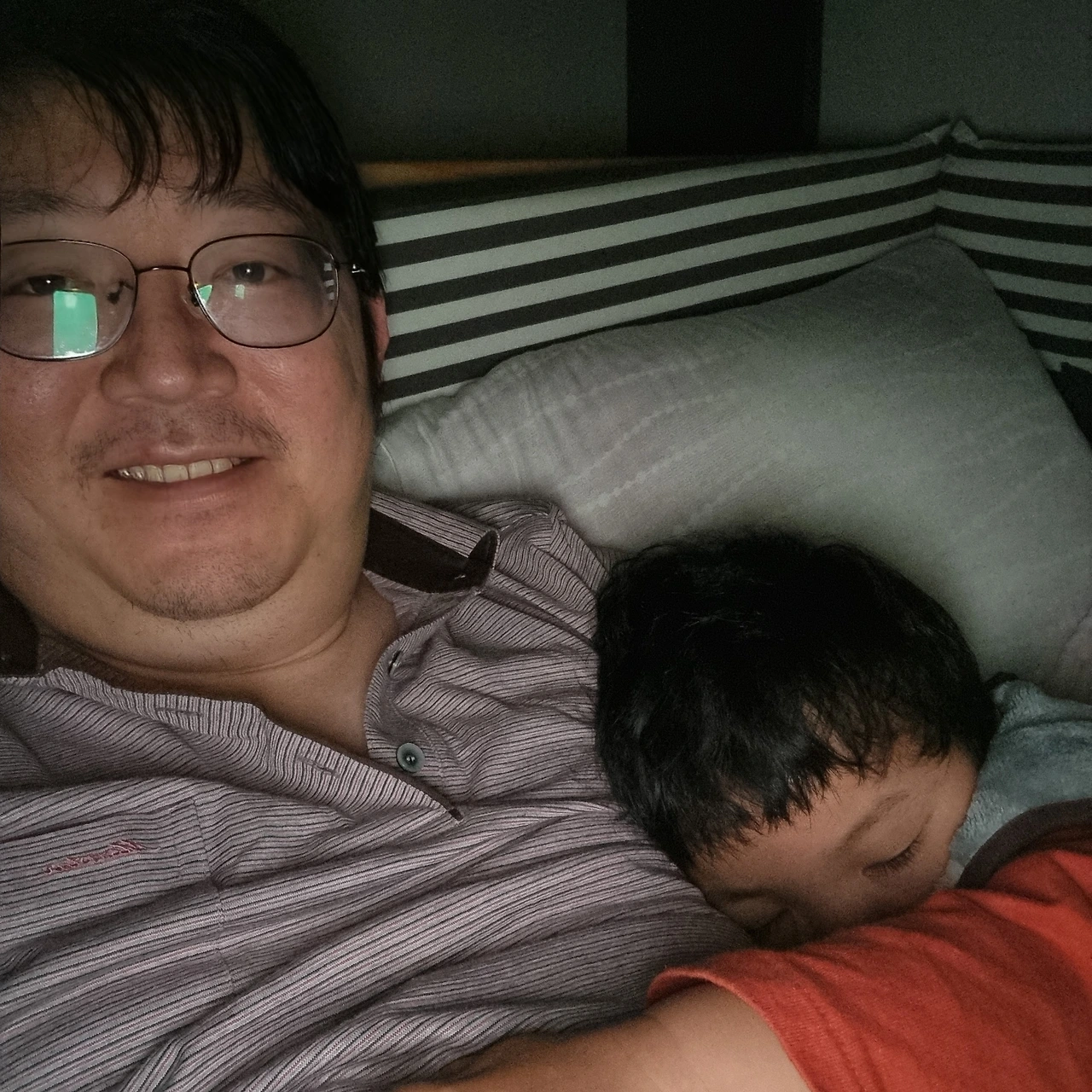 요즘에는 퇴근해 밥 먹고 내가 아들을 데리고 들어와 불을 끄고 재운다. 재우려 노력하면 놀자는 줄 알고, 엄마가 할 일 다 마치고 한숨 돌리고 방에 들어올 때까지 안 자고 캄캄한 방을 잘도 돌아다닌다. 내가 베개에 기대어 스마트폰을 켜고 글을 쓰니, 아들 요한이가 내 품으로 들어와 잠깐 폰 화면을 들여다보다가, 내 팔에 머리를 묻고 잠에 들었다.
