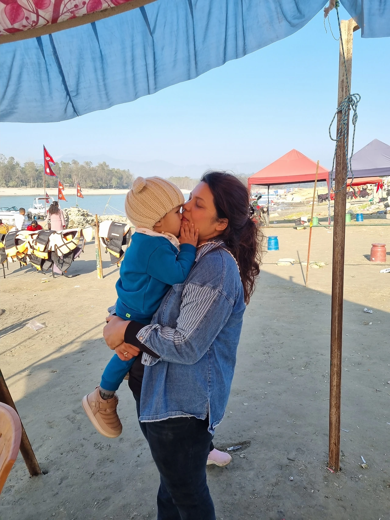 6일 금요일이었다. 일찍 점심을 먹고 버스를 탔다. 처갓집은 Nawalparasi에 있고, 강을 건너면 Chitwan이다. Chitwan은 네팔의 대도시 중 하나로 굳이 우리나라와 비교하면 대전 정도 되는 도시다. 유네스코 자연유산인 치트완 국립공원으로 유명한 도시다. 처갓집이 있는 Nawalparasi와 Chitwan은 다리 하나 사이다. 물론, 처갓집에서 Chitwan이 엎어지면 코 닿을 때는 아니다. 시내버스를 타고 먼지가 풀풀 날리는 울퉁불퉁한 길을 한창 달려야 한다. 다리를 넘어 치트완에 이르자마자 바로 내렸다. Chitwan과 Nawalparasi를 가로지르는 Narayani 강변으로 향했다.