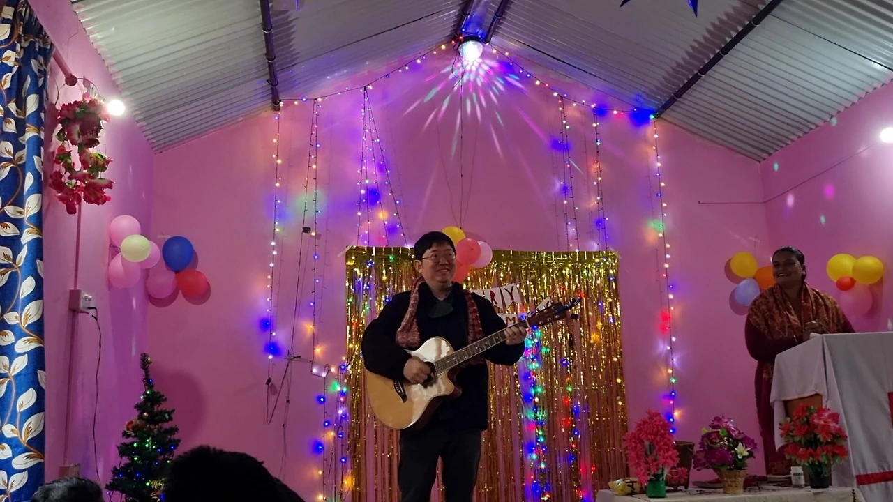 한국에서 왔다고 찬양을 하라고 해서 나갔다. 원래 아내 에미마랑 둘이서 네팔찬양 <던야밧 예수>와 한국찬양 <당신은 사랑받기 위해 태어난 사람>을 부르기로 했었다. 아내 에미마는 빠지고 나 혼자 찬양을 하게 되었고, 네팔찬양 <던야밧 예수> 한 곡만 불렀다. <던야밧 예수>를 부르면 아들 요한이는 몸을 흔들흔들 리듬을 탄다.