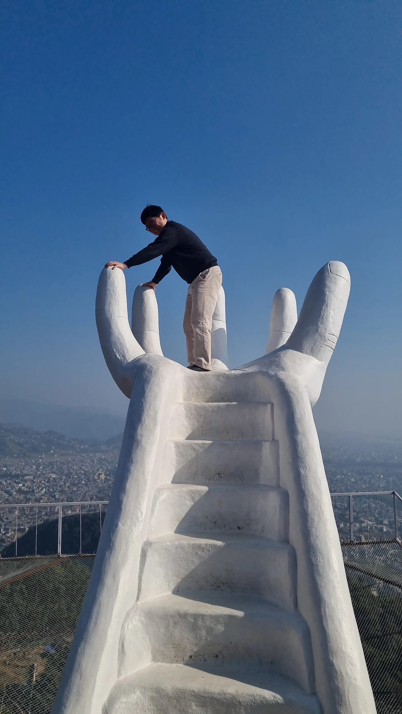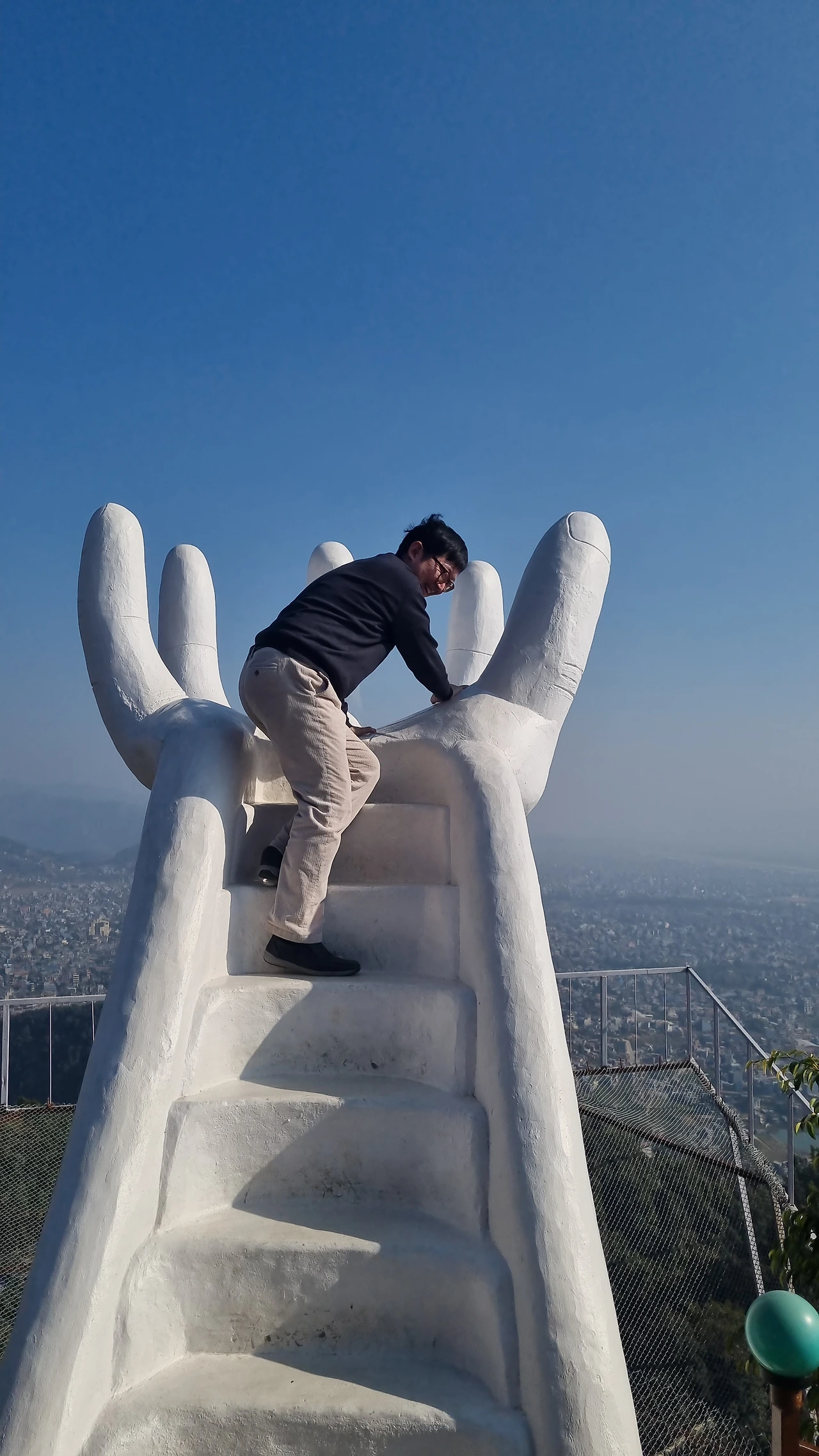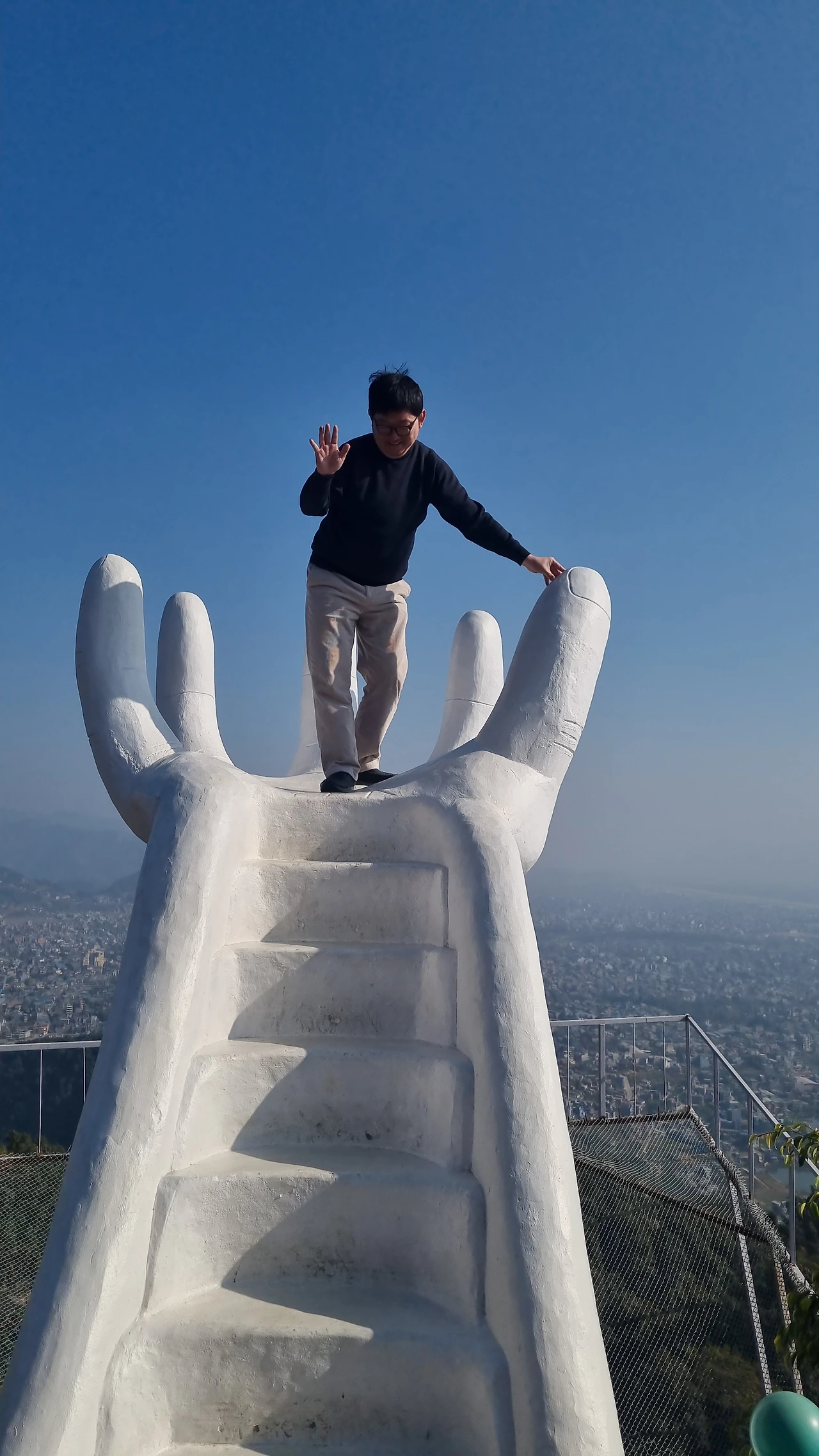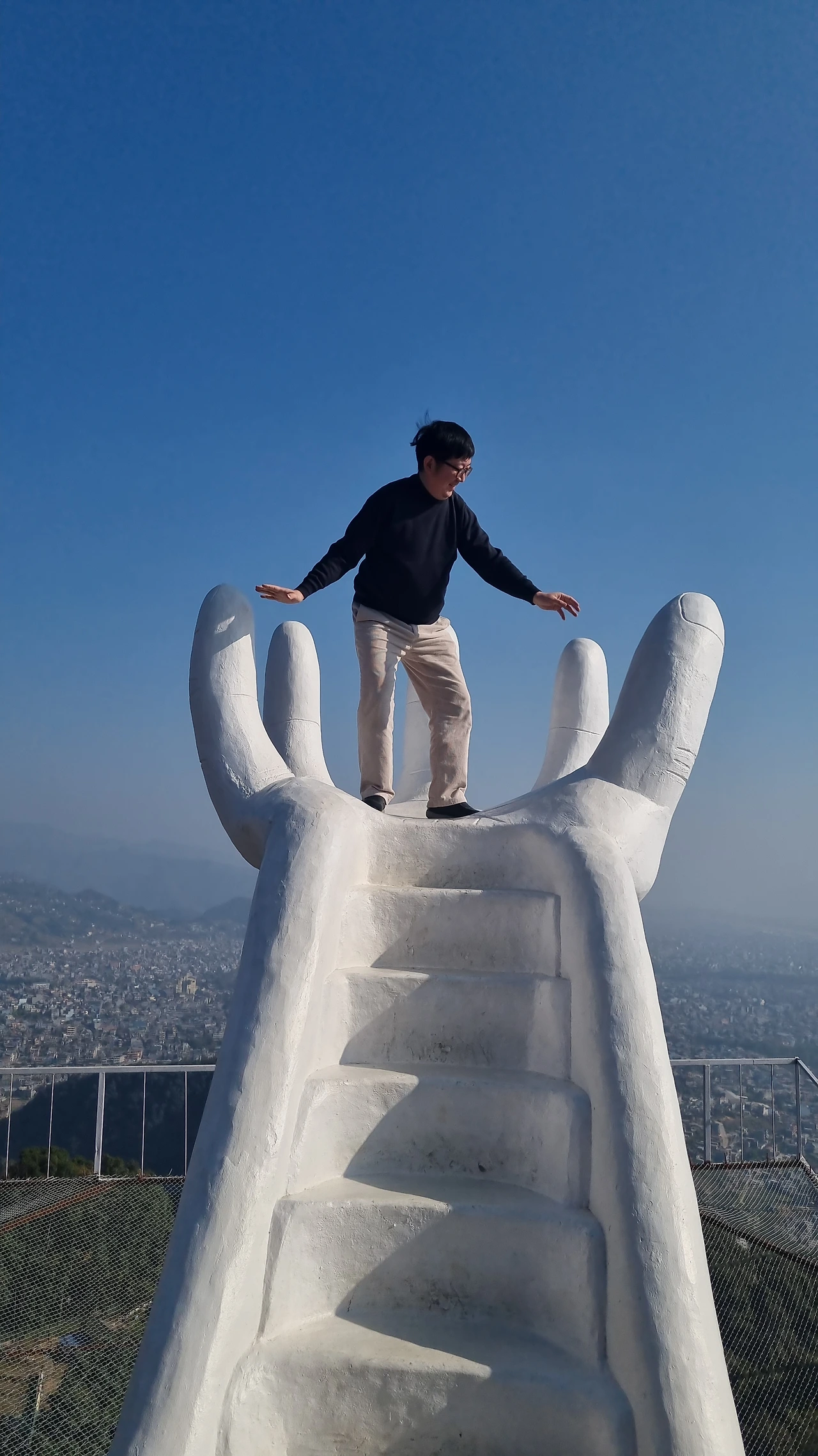택시를 두 대를 나누어 타고 포카라 도심과 저 멀리 큰 산이 보이는 결코 잡지는 않지만 상대적으로 작은 산에 올라가 사진을 찍었다. Taapu Restro & Cottage라는 카페인데, 위험해 보이지만 위험하지 않은 액티비티 몇 개를 할 수 있는 카페였다.