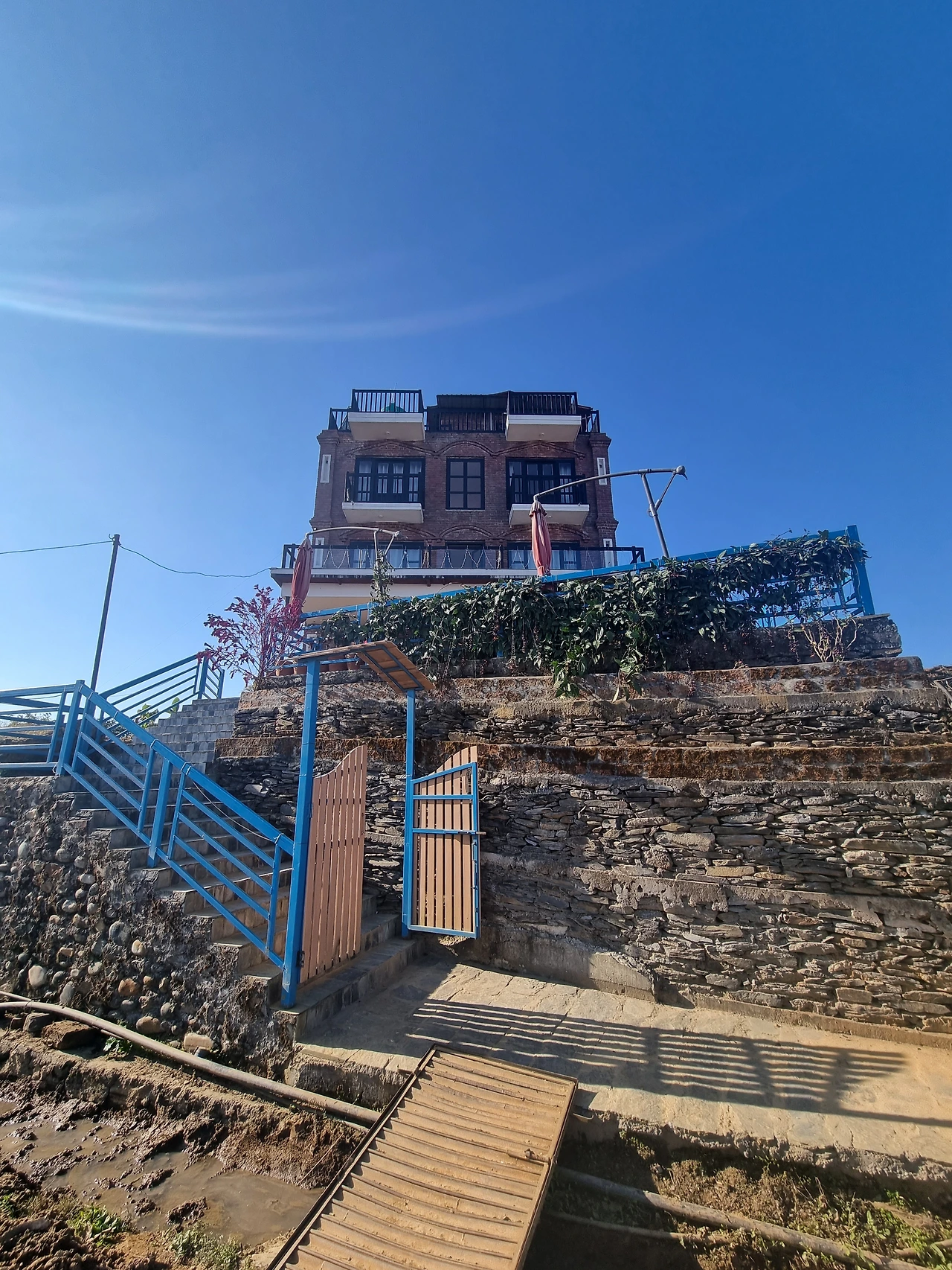 깊고 높은 산 위 Old House, Old Villiage라는 콘셉트로 관광 마을로 재건했다. 히말라야가 저 멀리 보이기도 한다. 우리는 마을에 있는 호텔이 아닌 좀 더 올라가 가장 높은 곳에 있는 Sunshine Hotel Bandipur에 묶었다. 가장 높은 곳이라 사면의 뷰가 모두 보이고 히말라야 뷰를 가진 호텔이다. 우리 식구가 쓴 방 발코니에서 히말라야가 보였다. 오후에는 밑에 마을이 보이나 아침에는 안개 때문에 밑에 마을이 안 보인다.