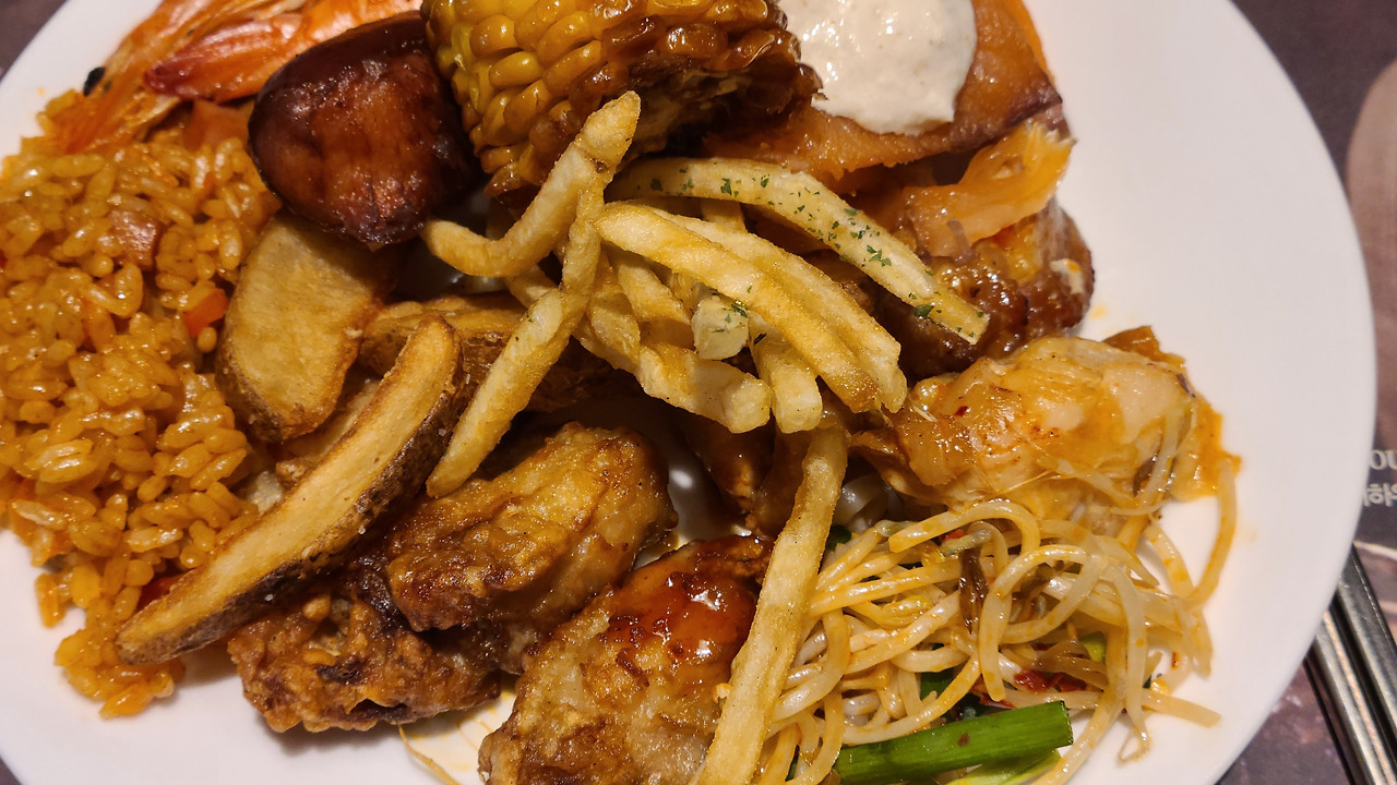 패밀리 레스토랑에 가본 경험이 미천해서 어떻게 시켜야 하는 줄 몰랐다. 인터넷 검색해 보니 샐러드 바를 주로 이용하는 것 같은데, 다른 사람들은 어떻게 패밀리 레스토랑을 이용하는지 자세한 설명은 없었다. 미리 인터넷 검색으로 패밀리 레스토랑 사용법을 간단히 공부하고 왔지만, 그럼에도 이론과 실전은 다르니까 웨이트리스에게 물어보았다. 패밀리 레스토랑에 특별히 스테이크를 먹으러 온 것이 아니라면 샐러드 바만 먹으면 되는 것 같다. 스테이크를 먹으러 온 것이라면, 스테이크를 시키면 샐러드 바 이용도 따라오는 것 같다.
