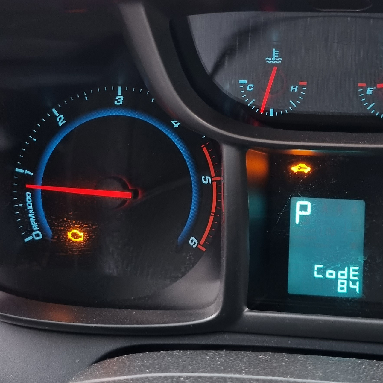고속도로는 아니고 한적한 도로를 한 시간 달렸다. 다음날 차를 타니 그 불은 꺼졌는데, 다른 불이 들어왔고, 또 다른 불 하나가 더 들어왔고, 'Code 84'라는 글자가 나왔다.