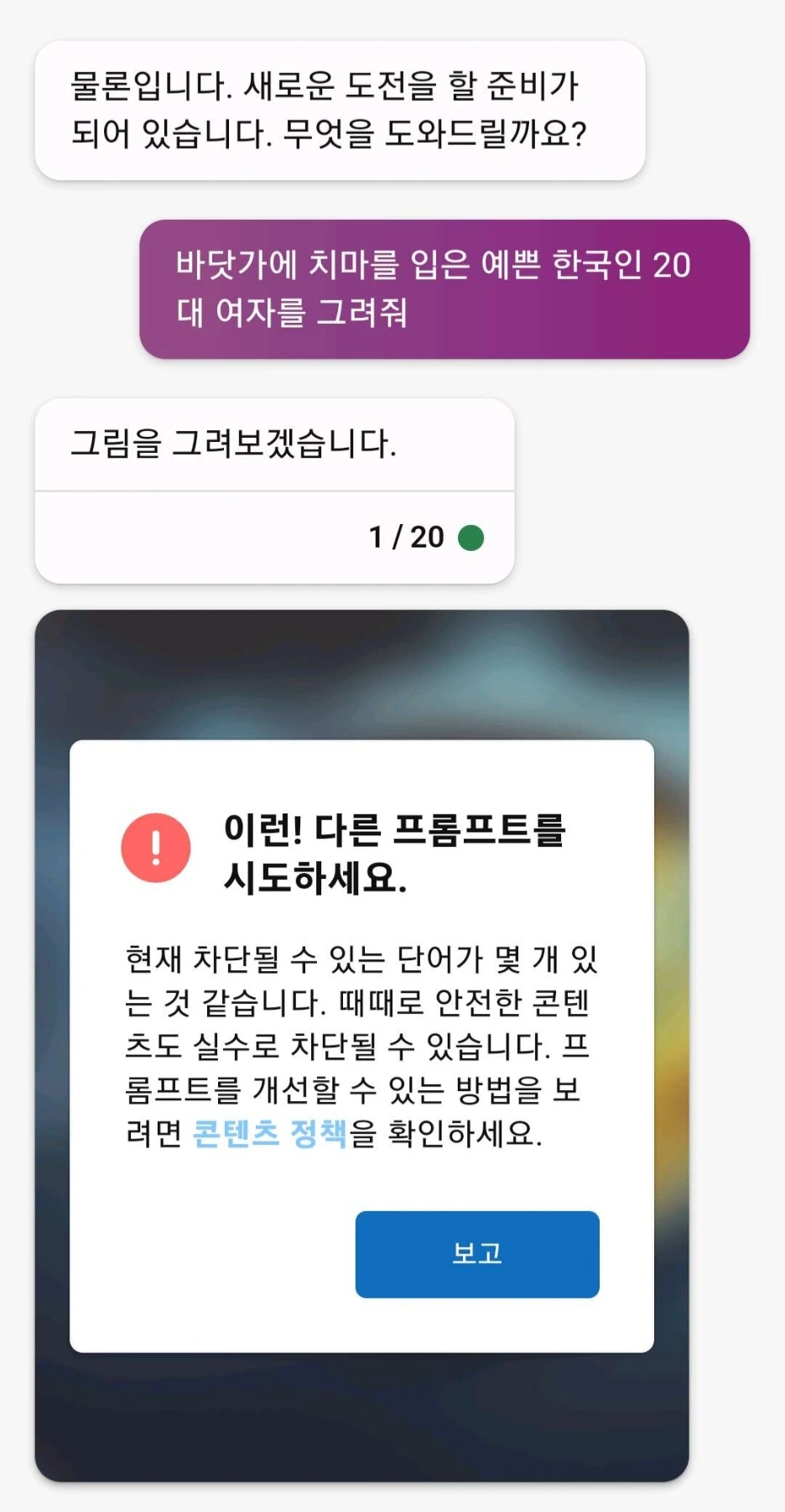 바닷가에 치마를 입은 예쁜 20대 한국인 여자를 그려줘