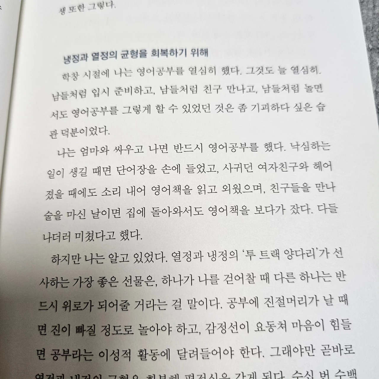인생은 투 트랙이다. 열정과 냉정, 감정과 이성이 같이 가야 한다. 사업과 인생은 투 트랙으로 돌아갈 때에만 정상일 수 있다.