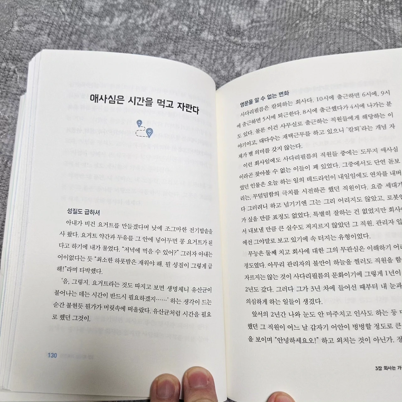 애사심은 시간을 먹고 자란다고. 처음부터 애사심이 있는 직원도 있지만, 몇 년 회사를 다니며 애사심이 드는 직원도 있다. 애사심이 생기기 까지도 시간이 필요하다. 내가 어떤 회사의 직원일 때도 그 회사에 애정을 가지기까지는 시간이 필요하다. 물론 회사를 다니면 다닐수록 애사심이 떨어져 퇴사를 생각하게 될 수도 있다.