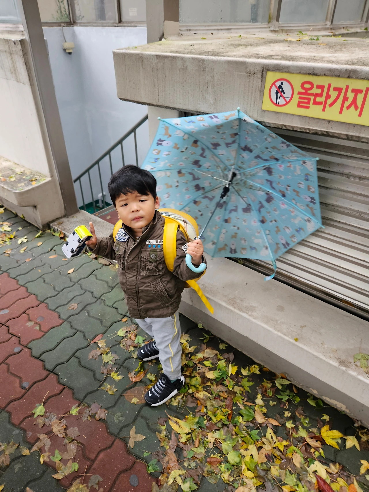 아침부터 날씨가 꾸리꾸리 했다. 아들 요한이를 어린이집에 데려다주느라, 내 우산 하나 요한이 우산 하나를 챙겼다.