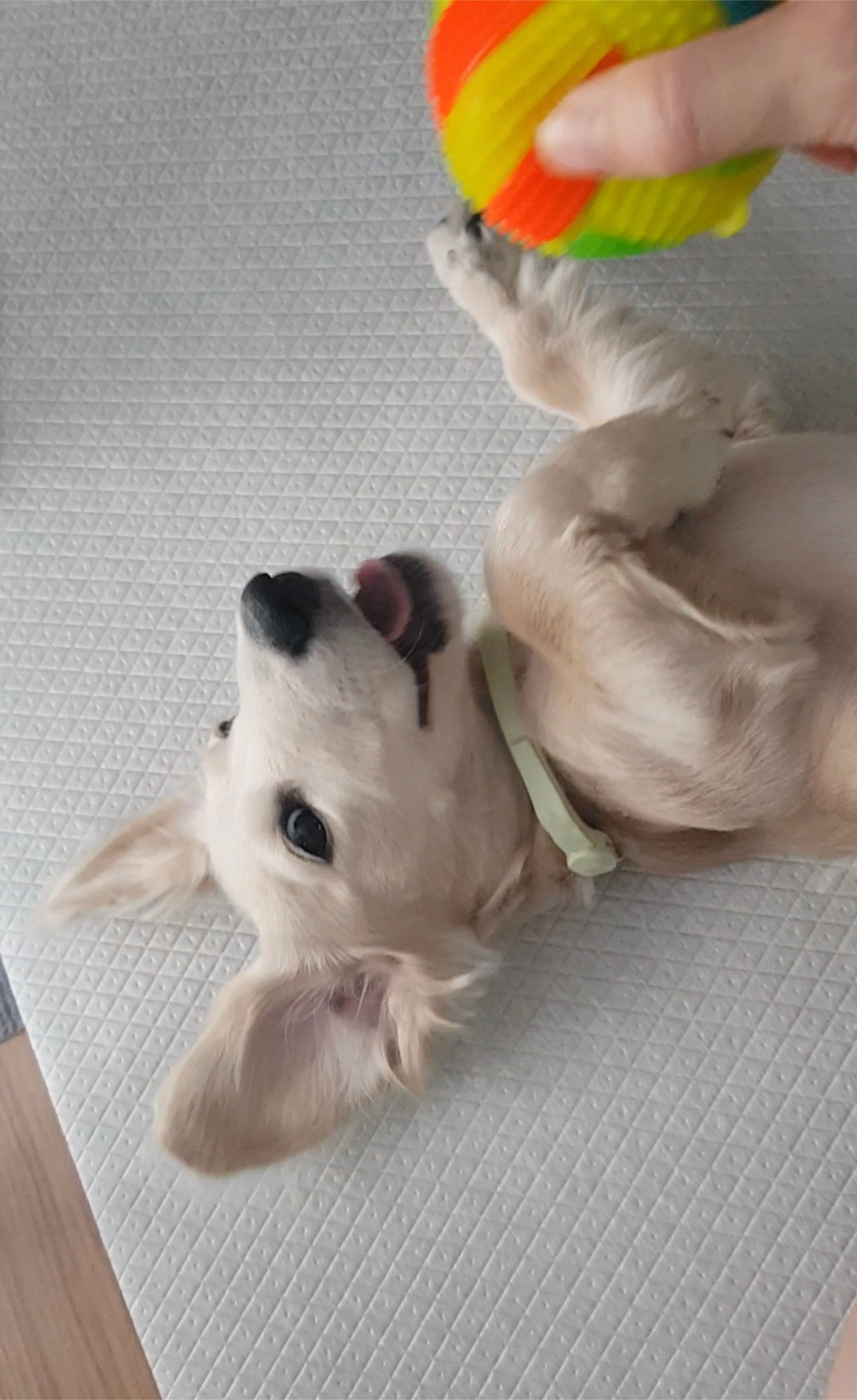 로프로 엮은 장난감 다음으로 내가 좋아하는 건, 바로 ‘탱탱!- 데구르르르르’ 동그란 공이야.