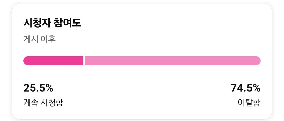 절반도 채 보기 전에 많은 사람이 화면을 휙휙 넘겨버렸다는 냉혹한 현실이 그래프로 떡하니 찍혀 있었다.