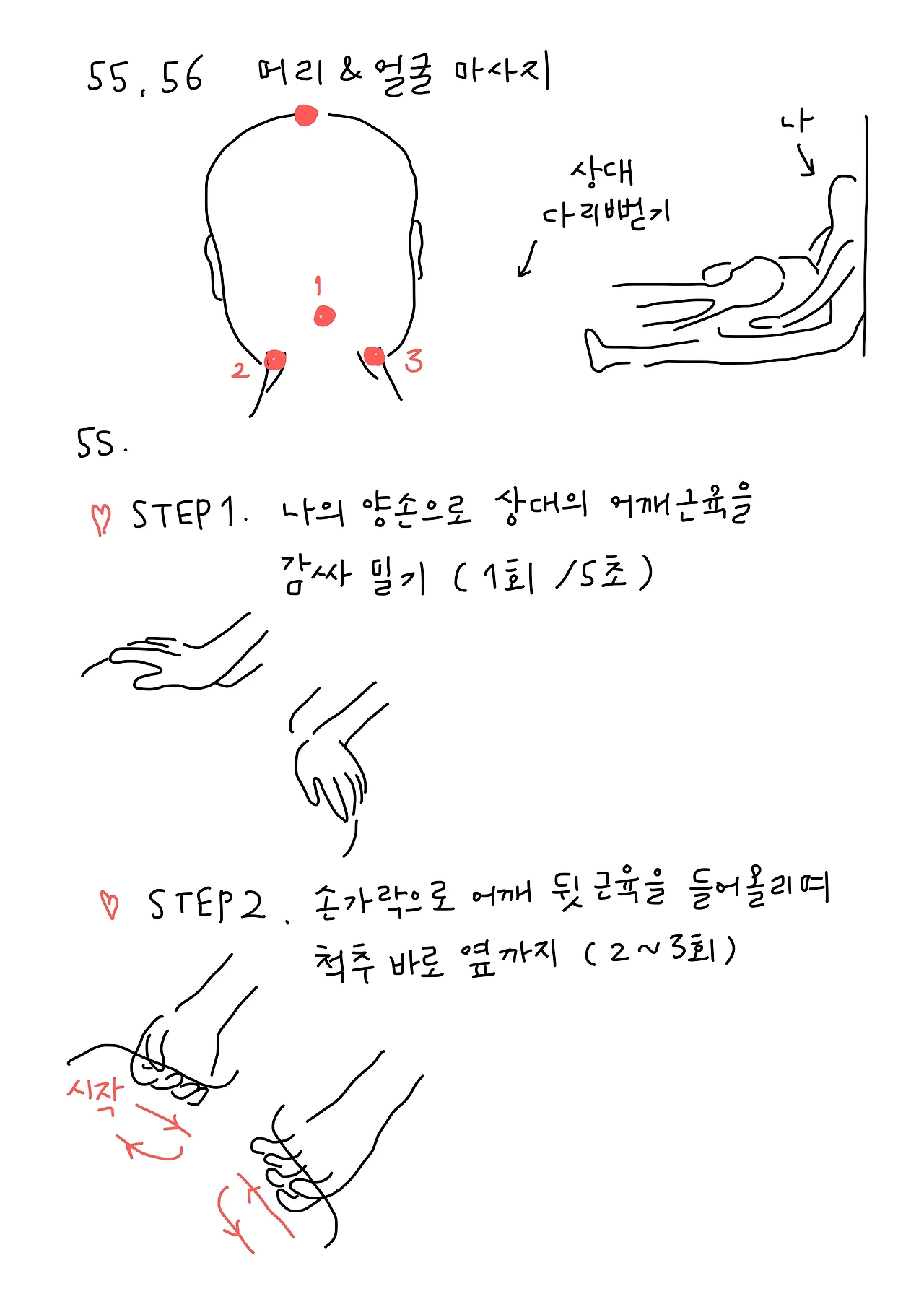 다음은 바로 누운 자세의 마지막인 얼굴과 어깨 마사지에 대한 내용이다.