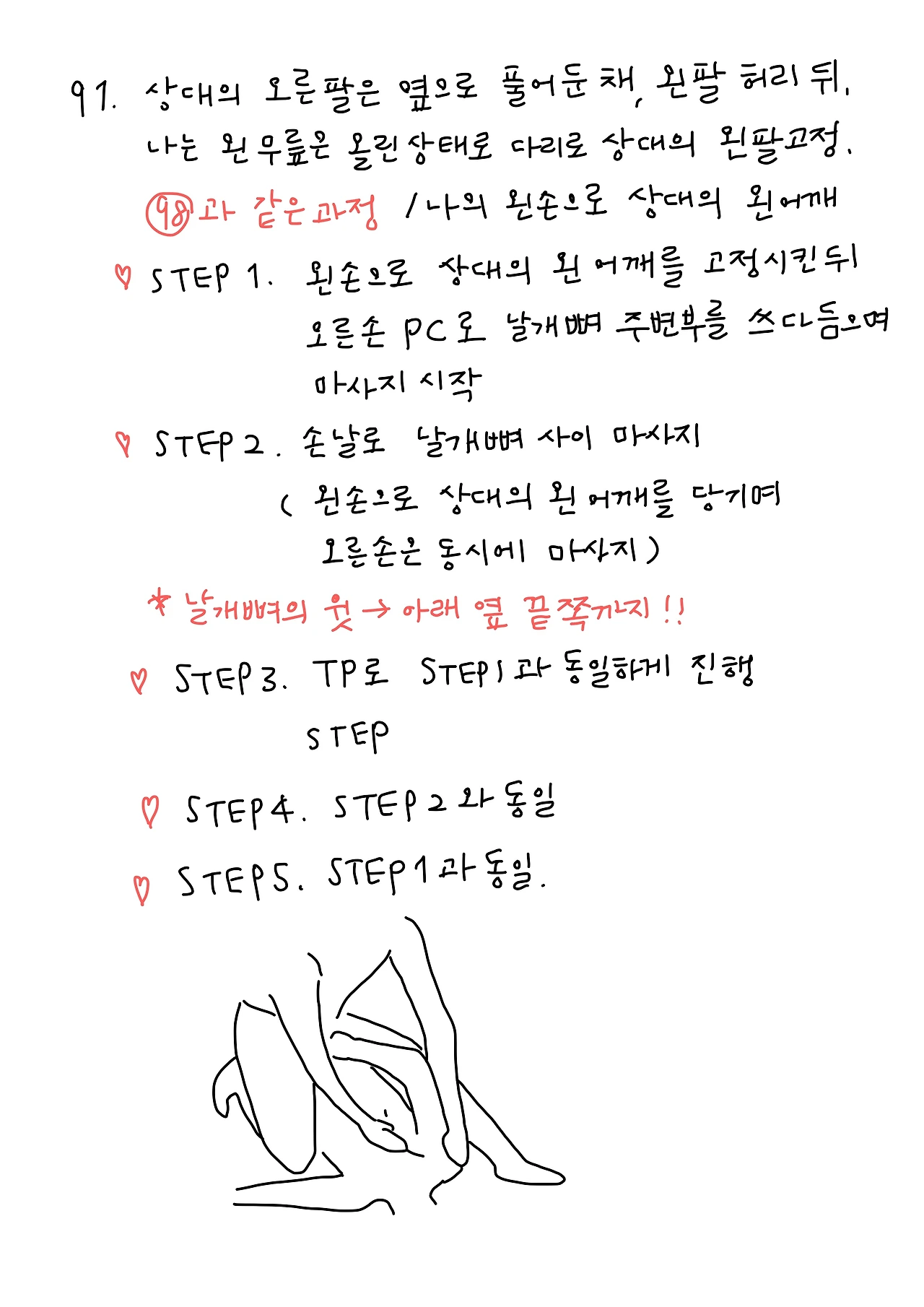 (이때 날개뼈의 윗부분에서부터 아래 옆 끝쪽까지 마사지한다)