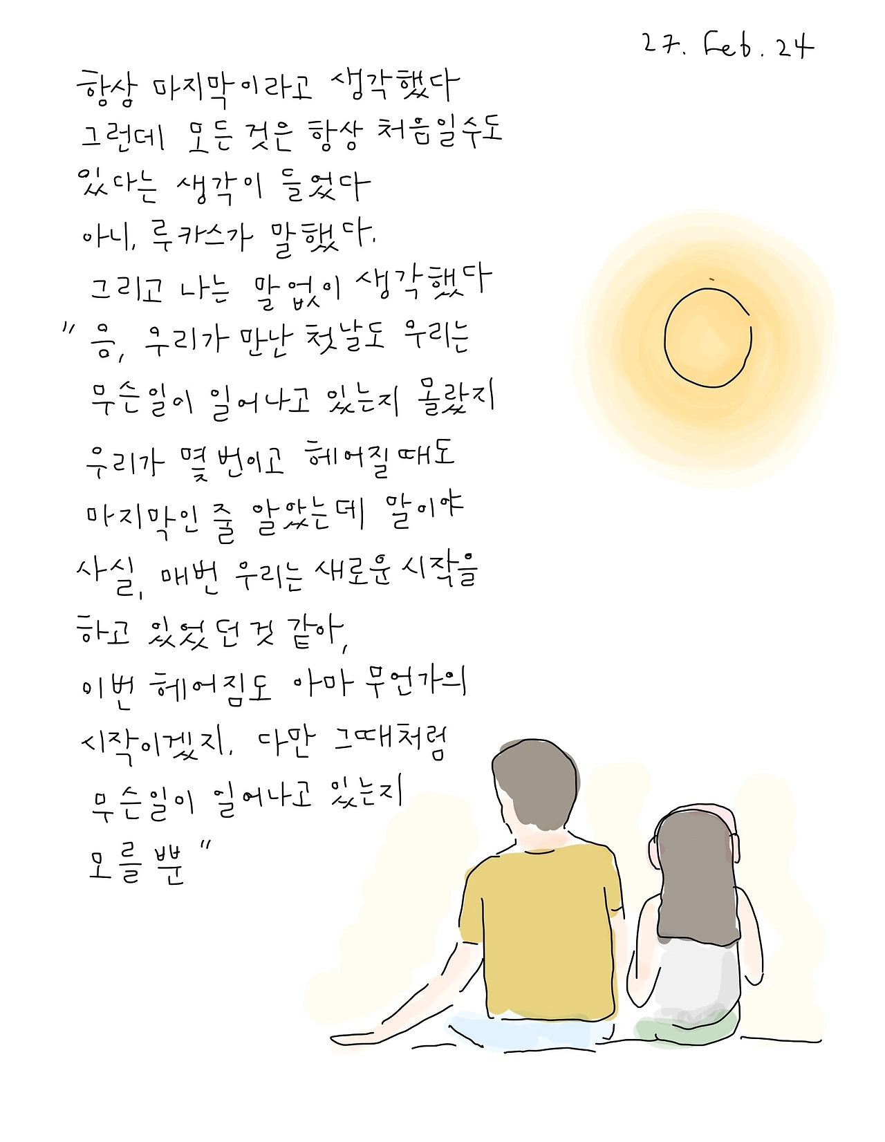 아차 싶었다. 맞아. 매일은 항상 새로운 시작이었지. 나는 왜 마지막이라고만 생각했을까.
