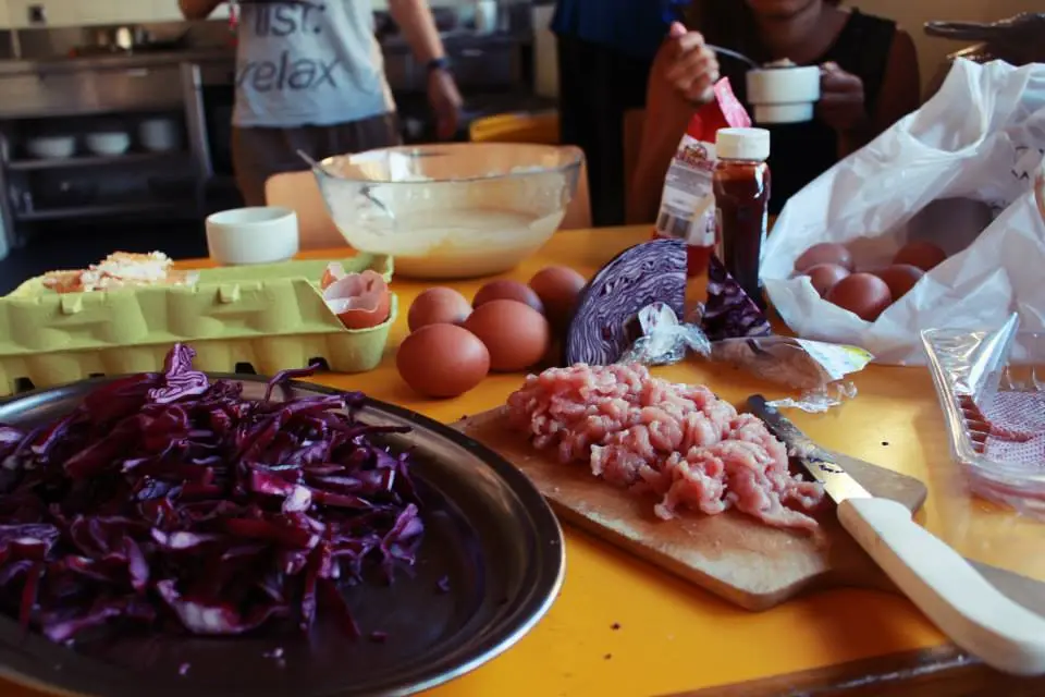 마을을 조금 구경한 뒤에 먹을거리와 저녁 재료를 사 왔어. 저녁은 므라찌가 오꼬노미야끼를 해준다고 했어. 스페인에서 일본 현지인이 만들어주는 오꼬노미야끼를 먹게 될 줄이야! 상상이라도 해봤겠니!