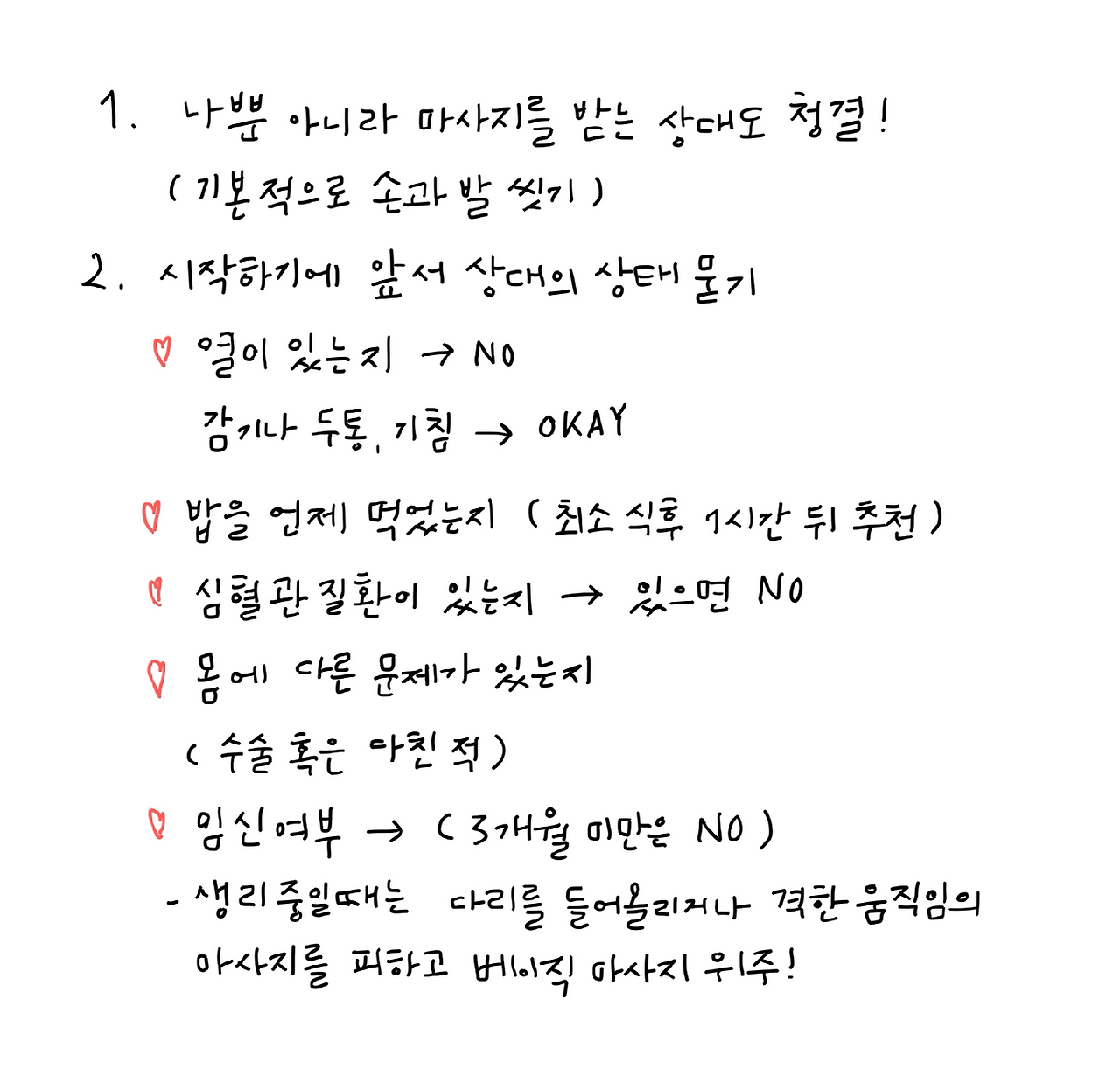 마사지를 시작하기에 앞서 준비해야 할 것과, 물어볼 기본 사항들