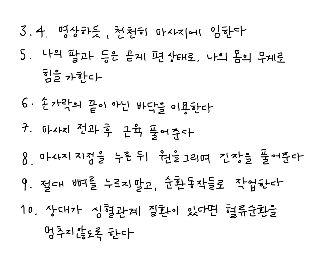 나는 간단한 드로잉과 함께 다시 정리를 하기 시작했다. 3일간의 수업이 끝난 뒤에도 나머지 공부를 하는 학생처럼 일주일 정도는 더 시간을 쏟아야 했다. 그래서 아직 완성 아닌 완성을 한 나의 드로잉 마사지북. 괜히 혼자 보기는 아까워 이렇게 공유를 한다. 혹시라도 미숙한 부분이 있거나 오류가 있다면 누구든 서슴지 않고 지적해 주시기를! 내가 아니라 나의 첫 번째 마사지 희생자가 될 누군가를 위해!