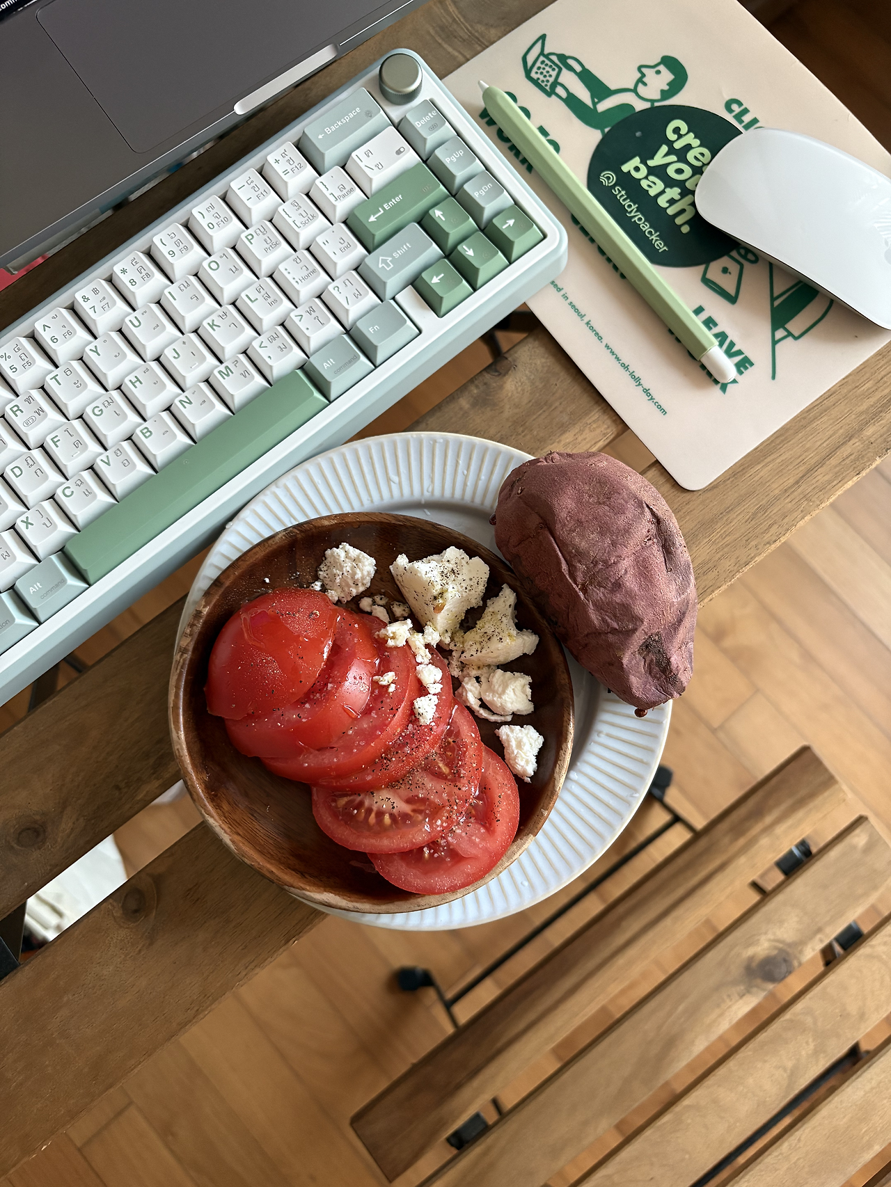 집으로 돌아와 씻고 나니 기분이 좋다. 아침에 뛰면 식욕이 더 가라앉는다. 왜인지는 모르지만 뭔가 더 건강하게 먹고 싶은 기분이 든다.