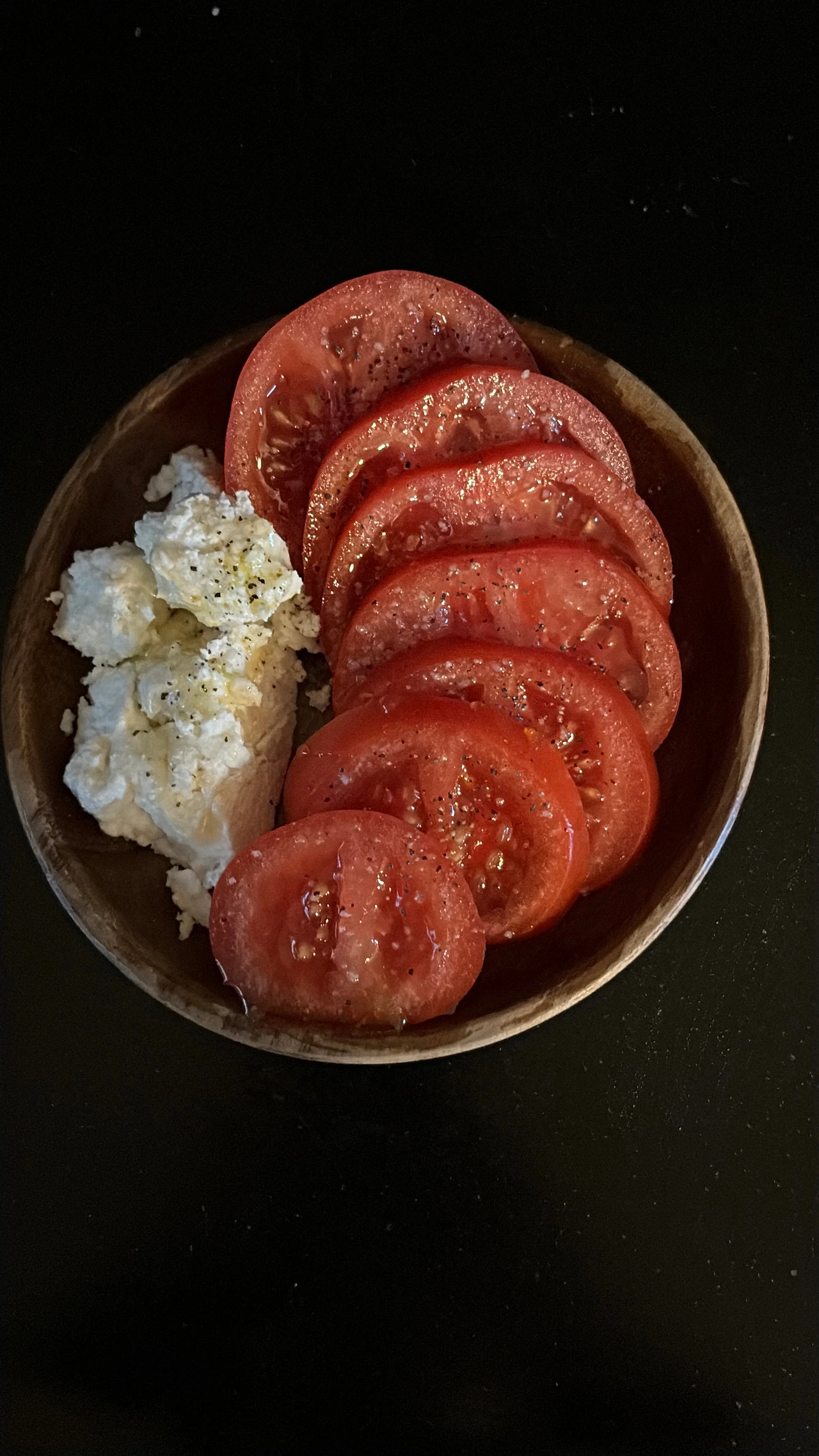 그래 오늘은 건강하게 가보자. 토마토를 슬라이스 해서 썰어두고 옆에 리코타치즈를 얹었다. 그리고 소금과 후추를 탈탈 뿌리고 꿀도 뿌린다.
