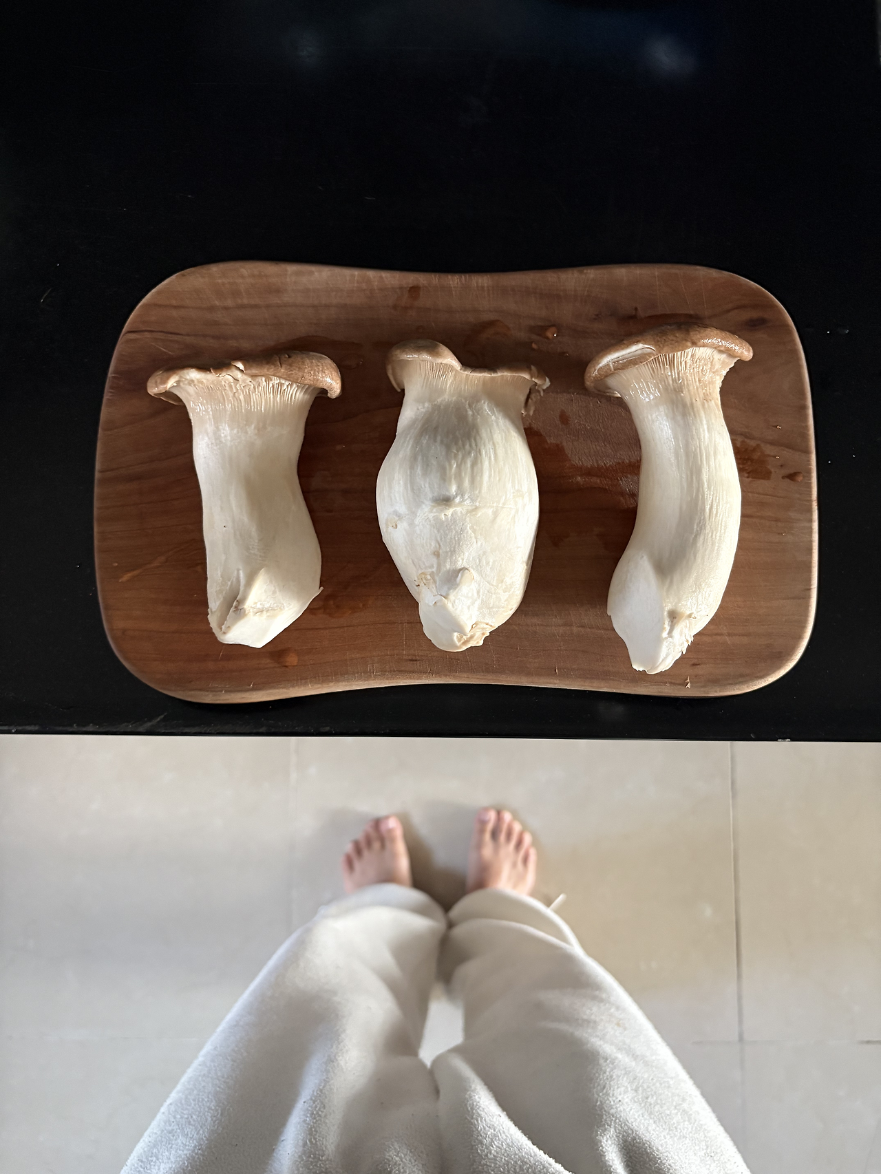 며칠 전부터 구석에 쭈그리고 앉아있는 새송이 버섯이 보인다.
