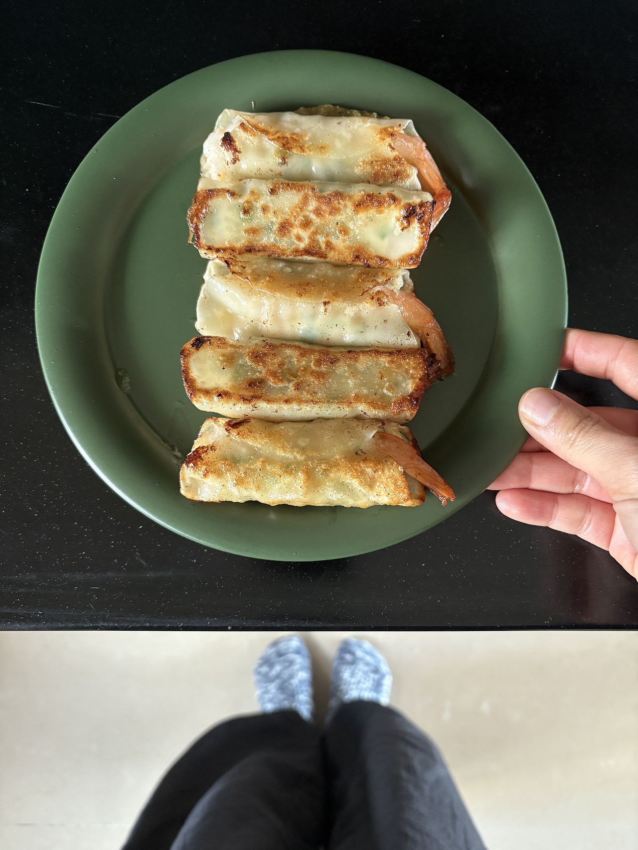부족한 듯싶어 냉동 새우만두도 구웠다. 요즘 아침이 점점 푸짐해진다.