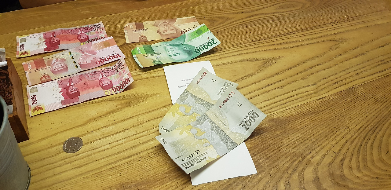우붓 시장에서 아무것도 사지 못한 우리는 생각보다 크고 깔끔한 덴파사르 공항 면세점에서 열심히 발품을 팔아, 온 가족을 위한 선물을 하나씩 구입했다. 그런데 계산을 하려고 보니 카드가 안된단다. 그래서 달러를 내려니 거스름돈은 루피아로만 줄 수 있단다. 원래 그렇다고 하거니와 달리 선택의 여지도 없었던 우리는 어쩔 수 없이 달러를 주고, 단위가 무지하게 큰 인도네시아 루피아를 받게 되었다.