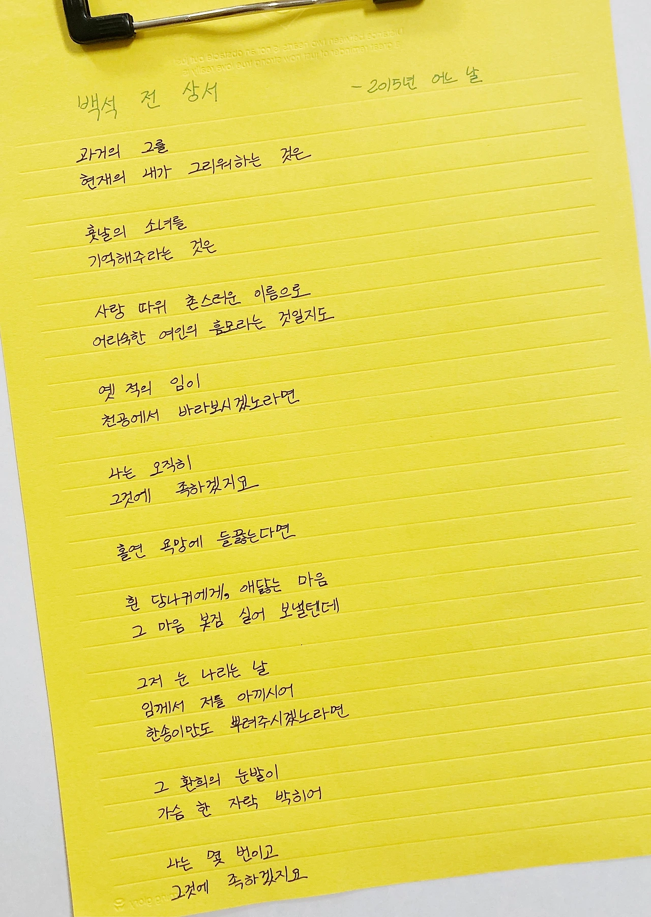 그럼에도 만일, 저 멀리 백석에게 내 편지가 닿는다면 참으로 여한이 없겠다.