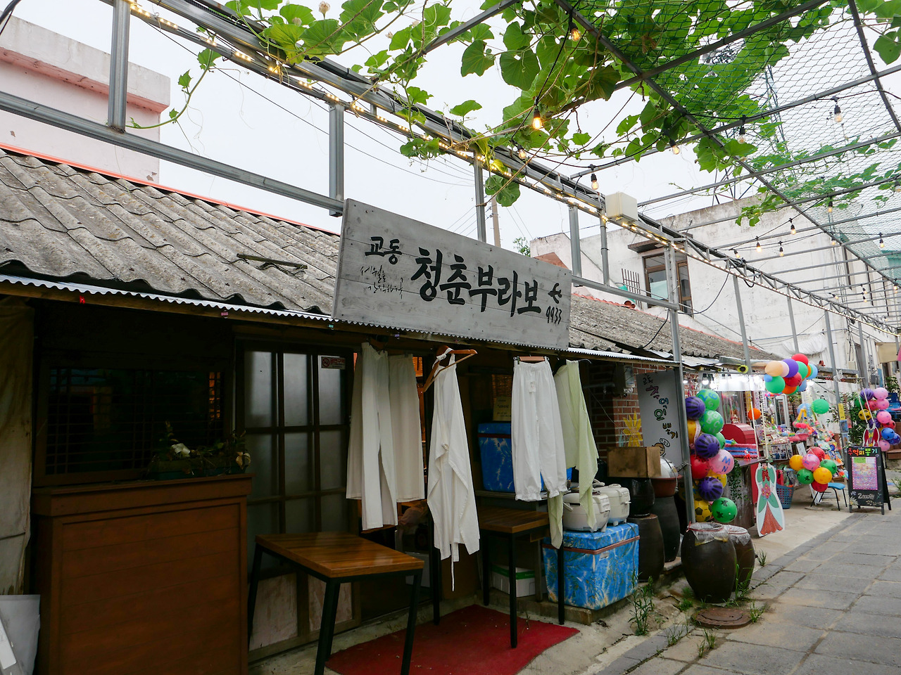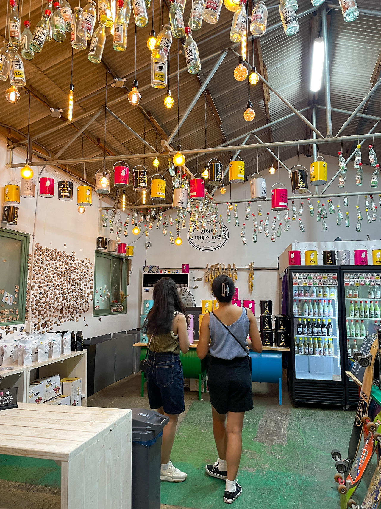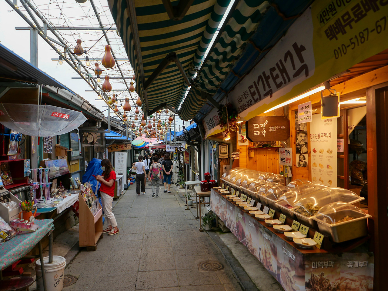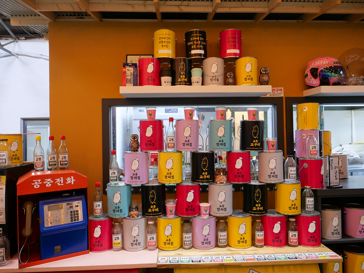대룡시장 입구 쪽에 보면 송화칩으로 소금이나 후추를 사용하지 않은 감자칩을 판다. 한 입 먹었을 때 진짜 소금 뺀 과자 맛이라 심심하다고 생각했는데, 이상하게 하나 둘 계속 들어갔다. 묘한 중독. 페인트 통에 들어 있는 감자칩은 나중에 저금통으로 사용할 수도 있다. 그 바로 건너편에 파머스마켓이 있다. 강화도 농산물이나 특산물 등을 구매할 수 있는 곳 같았는데, 우리가 갔을 땐 이미 문이 닫힌 상태였다. 까비.