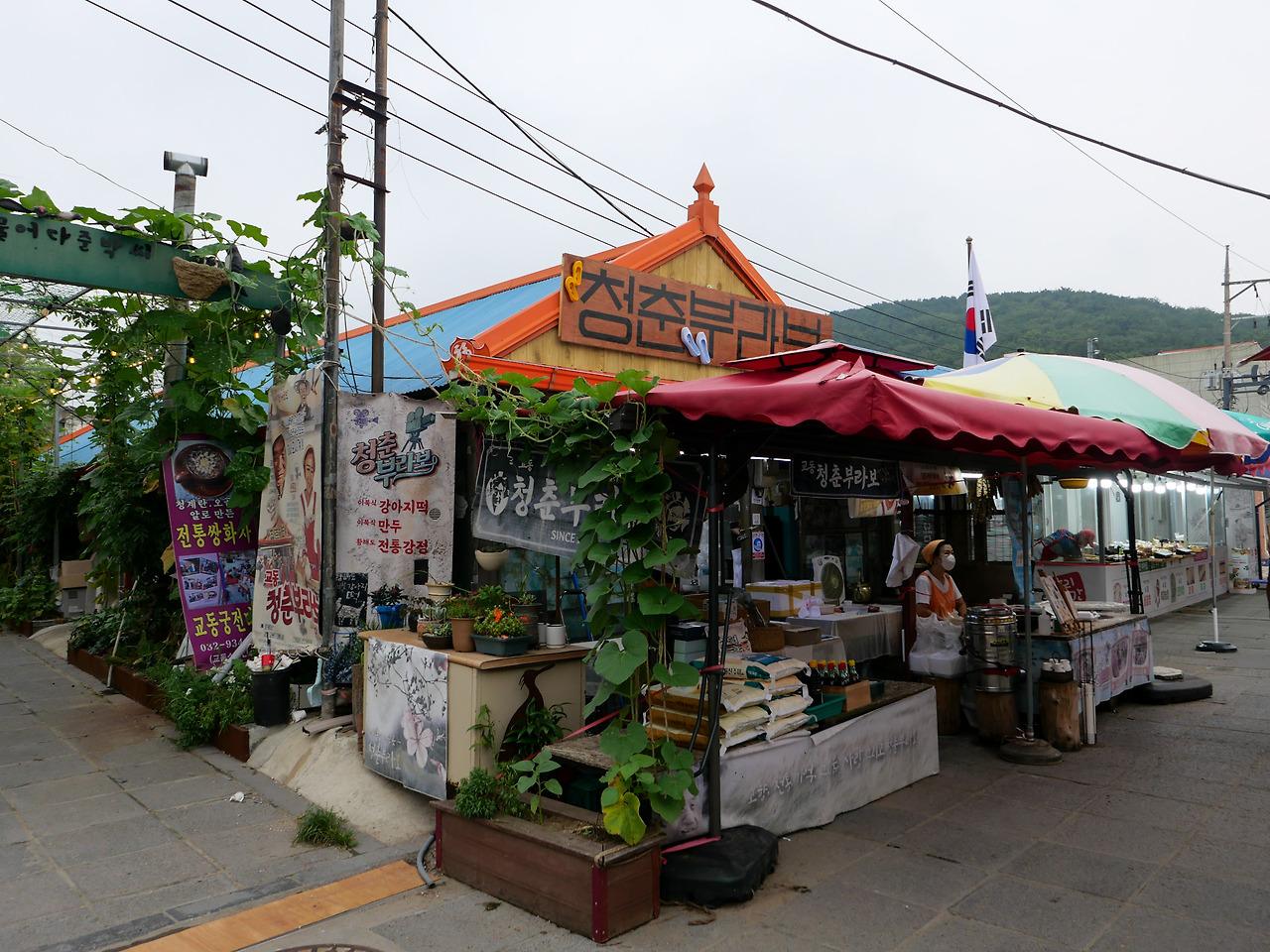 강화도는 대부분 6시쯤에 문을 닫는 듯싶다. 5시 넘어서 도착했는데 대부분 가게가 정리하는 분위기였고 사람도 많지 않았다. 원래 강화도 향토음식 젓국갈비 먹으려고 했는데, 재료 소진으로 마감하고 계셨다. 아쉽게 대룡시장 안에만 어슬렁거리다가 청춘부라보에서 떡을 먹었는데 너무 맛있었다. 떡 안에 팥이 있었고 인절미 가루가 묻혀 있었는데 많이 달지도 않고 따뜻해서 나도 모르게 계속 넘어갔다. 어떤 옛 추억 간식을 살지 돌아다녔는데 나쁘지 않은 수확이었다.