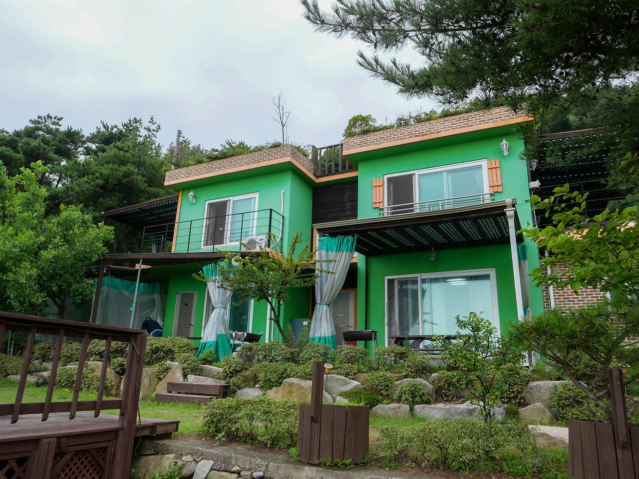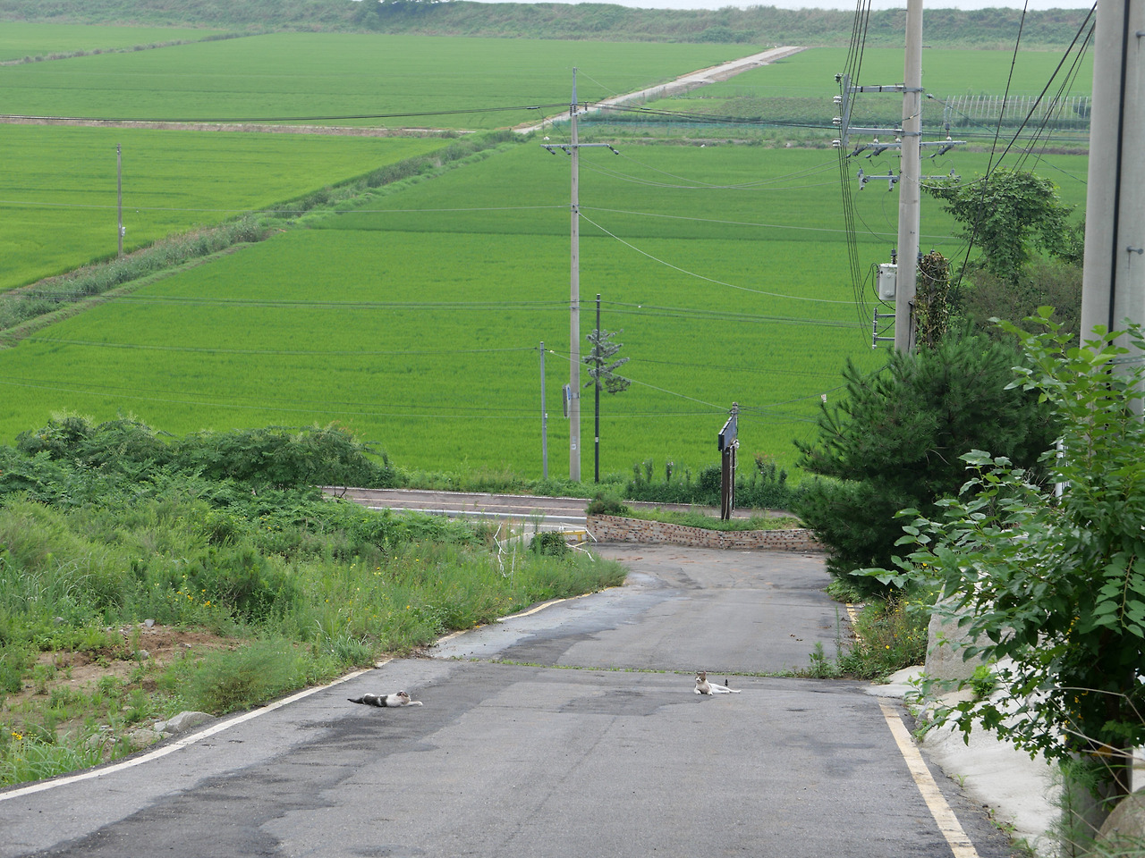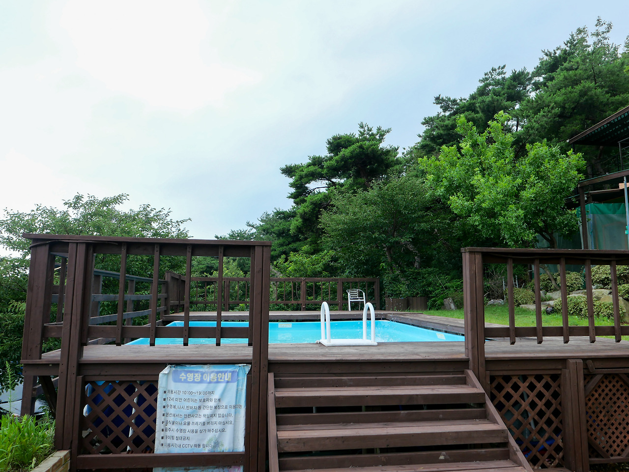 보통 2인실이 많아서 3인실까지 찾느라 많이 검색했다. 그 검색한 시간이 아깝지 않을 만큼 풍경이 좋았다. (단, 매트리스가 좋지 않아서 허리가 살짝 아팠다) 창문을 열면 바다와 푸른 논이 보였다. 고양이가 거리에서 뒹굴뒹굴 거렸으며 차도 별로 지나다니지 않아서 한적하고 조용했다. 각 건물마다 수영장이 있어서 물놀이하기에도 나쁘지 않다. 하나로마트도 대부분 문을 닫아서 외포리에 있는 싱싱 마트에서 고기와 과일, 아침거리를 사서 숙소로 갔다. BBQ 참숯과 고기판 해서 40,000원 추가했다. 같은 삼겹살인데 이렇게 먹으면 왜 더 맛있게 느껴지는 걸까.