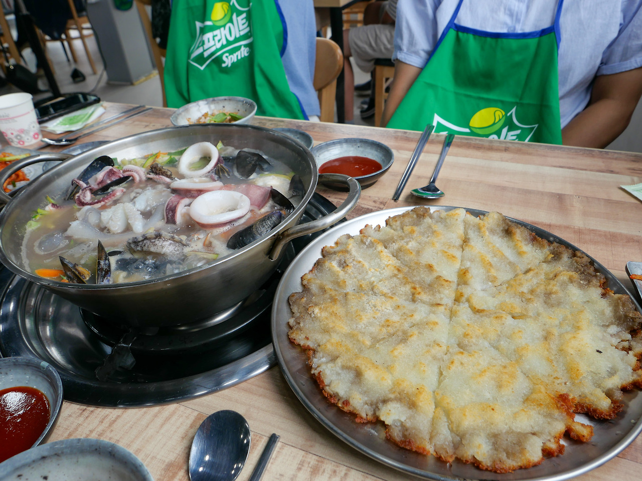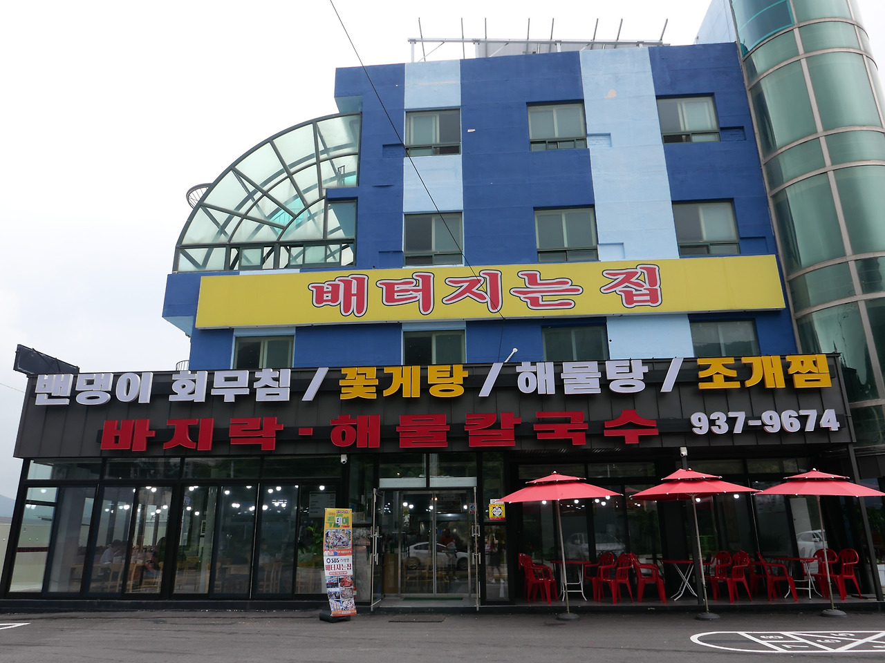 역시 바다 여행이라면 해물칼국수 정도는 먹어줘야지. 동막해수욕장이랑 가깝기도 하고 해물을 많이 주기도 하며 손칼국수라 면이 쫄깃하다는 말에 첫 스타트를 배터지 게 끊었다. 후추 넣으면 간이 딱 맞을 것 같았다. 소문대로 면은 너무 쫄깃쫄깃. 먹을수록 묘하게 중독된달까. 전복 철이라 전복도 맛있고 오징어랑 낚시 홍합 조개까지 가득 있어서 면 말고도 먹을 게 풍성했다. 2인분 해물탕이랑 감자전 주문했는데 감자전도 바삭한데 약간 간이 아쉬웠다. 둘 다 기본 간만 잘 되면 진짜 매일 찾아오고 싶은 맛이었다. 우리가 나갈 때쯤엔 빈자리가 거의 없었다.
