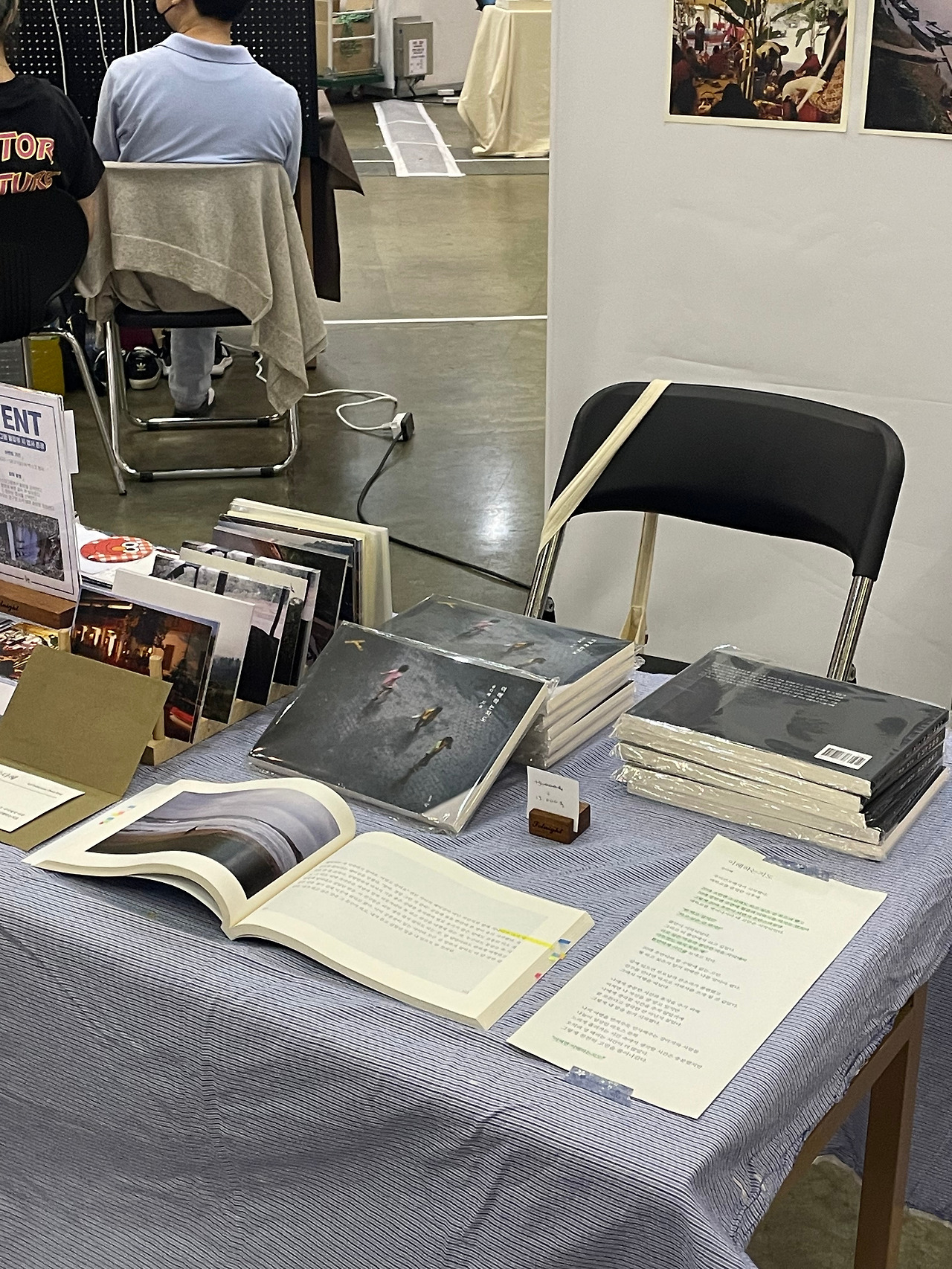 사람이 제일 없던 날이었던 거 같아요. 6시에 끝나는 행사인데 5시부터 마감하는 부스도 많았어요. 혹시 몰라서 5시 50분까지 버텼는데 사람 없는 걸 보고 저도 정리했어요. 다른 작가님들도 생각보다 판매가 저조한 듯 보였어요. 주최자 분도 올해는 사람이 많이 없어서 당황스럽다고 하더라고요. 홍보를 조금 더 해주시길 바라는 마음이 강했어요. 아쉬웠거든요. 그럼에도 오랜만에 독자와 얘기를 나눌 수 있어서 좋았어요. 예전에는 활발하게 "안녕하세요. 책 읽고 가셔요."라고 말했다면 이번엔 쑥스러워서 작게 인사하곤 했어요. 다음에도 이런 기회가 생긴다면 기분 좋게 인사하며 많은 이야기를 나눌 수 있을 것 같아요.