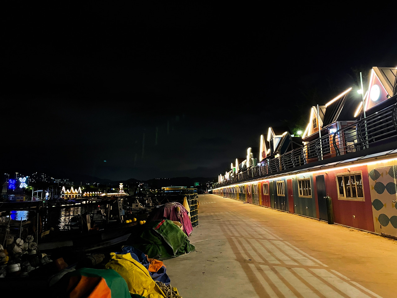 다대포 해수욕장만 보기 아쉬워서 택시 타고 장림포구에 갔어요. 일몰 시간뿐만 아니라 야경도 좋아서 밤에 가도 예쁘다는 말 때문이었어요. 그런데 불이 다 꺼져있더라고요. 택시 기사님은 행사가 없는 경우엔 대부분 조용하고 불이 꺼져있다고 했어요. 근처 대가면옥도 가려고 했는데 문 닫은 시간이라 아쉽게도 가지 못했어요. 뒷 일정은 실패였어요. 밥 먹을 때마다 가게 문이 닫혀있어서 결국 호텔에서 치킨을 먹었어요.