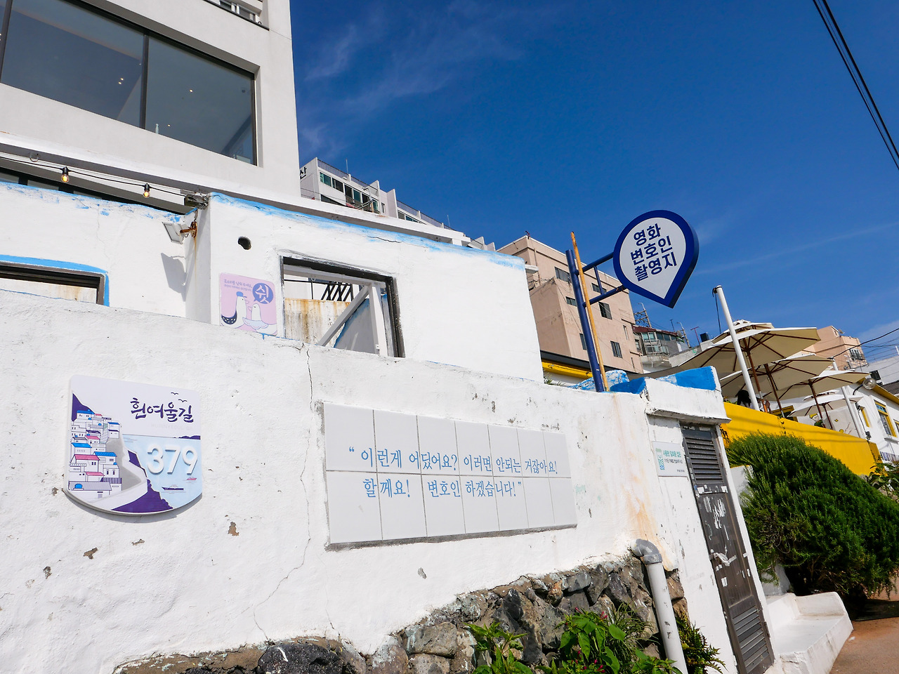 흰여울문화마을 끝까지 가면 전망대가 있는데 계단 아래로 내려가면 포토스폿이 있어요. 줄이 많아서 찍진 않았지만, 주변 풍경은 너무 좋았어요. 계속 뒤돌아보게 되고 아까 찍었던 똑같은 장면이라도 계속 셔터를 누르게 되더라고요.