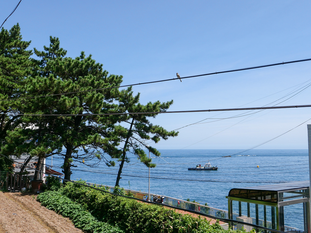 햇빛이 좋아 나른 나른했는데 카페인 덕분에 잠이 조금씩 달아났어요. 흰여울마을 가는 버스를 타려고 정류장에 가니 '차량 없음'이라고 뜨더라고요. 버스도 기다릴 겸 동네를 산책했어요. 철길 따라 걷다 보니 전망대가 있더라고요. 동네가 아기자기하고 푸릇해서 어느 작은 마을처럼 느껴졌어요. 버스가 산책을 마쳐도 오지 않아 택시 타고 전철역까지 갔어요.