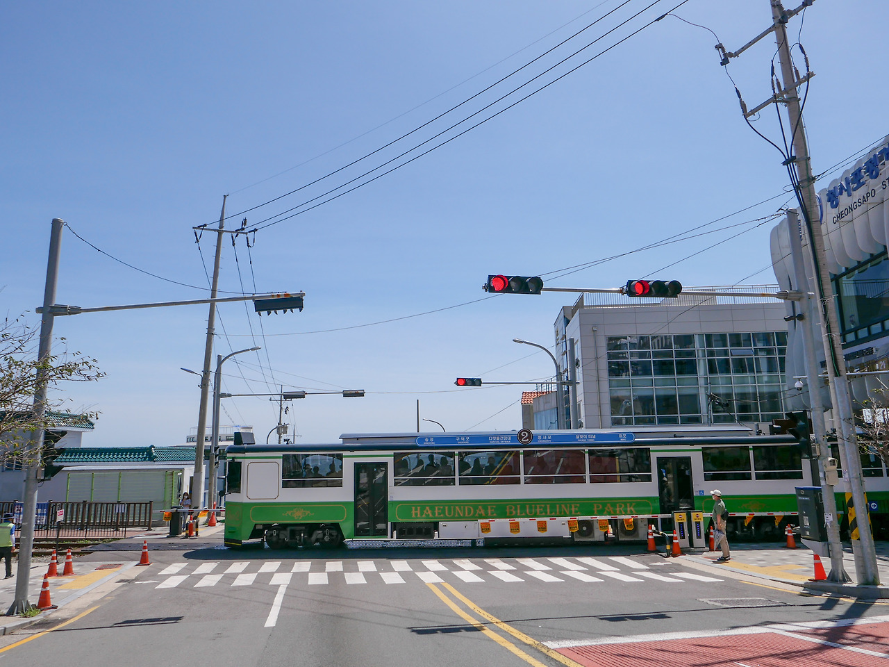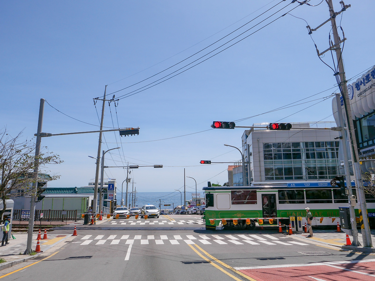 바다와 열차가 한눈에 보이는 이 모습을 보면서 말이죠. 그게 이뤄졌네요. 사람이 많아서 사진 찍기 어려웠지만, 타이밍이 잘 맞아서 예쁘게 찍을 수 있었어요. 열차가 15분 ~20분마다 온다고 하는데, 열차는 순식간에 지나가요. 그래서 열차 직원분의 움직임에 따라 카메라를 대기해야 했어요. 청사포 정거장에서 열차를 보고 근처 카페에서 커피를 마셨어요.