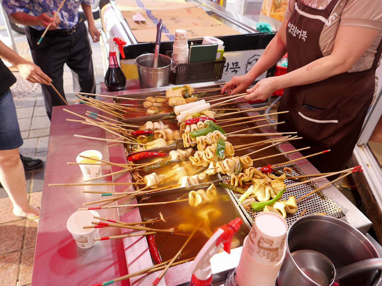 바로 공항으로 가기엔 시간이 많이 남아서 국제시장에 갔어요. 재래시장, 어시장을 보는 걸 좋아해서 구경했는데 진짜 크더라고요. 인천 소래포구보다 커 보였어요. 회도 먹고 싶었지만, 시간이 없으니 눈에 보이는 어묵집에 가서 어묵 3개를 먹었어요. 물떡도 쫄깃하니 맛있고 국물도 많이 짜지 않고 적당해서 계속 먹어요. 제가 오니까 사람들이 줄줄이 와서 사진 찍으며 드시더라고요. 우연히 온 곳이었는데 맛집이었나 봐요.