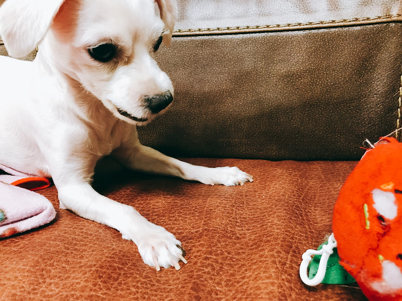 어떤 말을 할 때마다 귀를 쫑긋 세우고 고개를 갸우뚱하며 눈을 크게 뜬다. 그 모습이 사랑스러워 오늘도 난 이상한 소리를 내고, 강아지 언어를 이해해보려 한다. 졸졸 쫓아다니는 모습이 귀엽기도 하지만 하루 종일 함께 하지 못해 미안하기도 하다. 똘똘이를 안고 자는 낮잠시간을 좋아하고, 내가 먹을 간식은 안 사도 똘똘이 간식은 사게 되고, 가끔 내 베개에서 사람처럼 자는 모습을 볼 때마다 사랑스러워서 어쩔 줄 모르겠다. 똘똘이에게 함께 사는 법을 배우고 있다. 똘똘이를 만나지 않았다면 이런 소소한 기쁨도 몰랐겠지. 같이 살지 않았다면 모르고 살았을 순간이 너무 많다. 다행이다. 똘똘이와 함께라서.