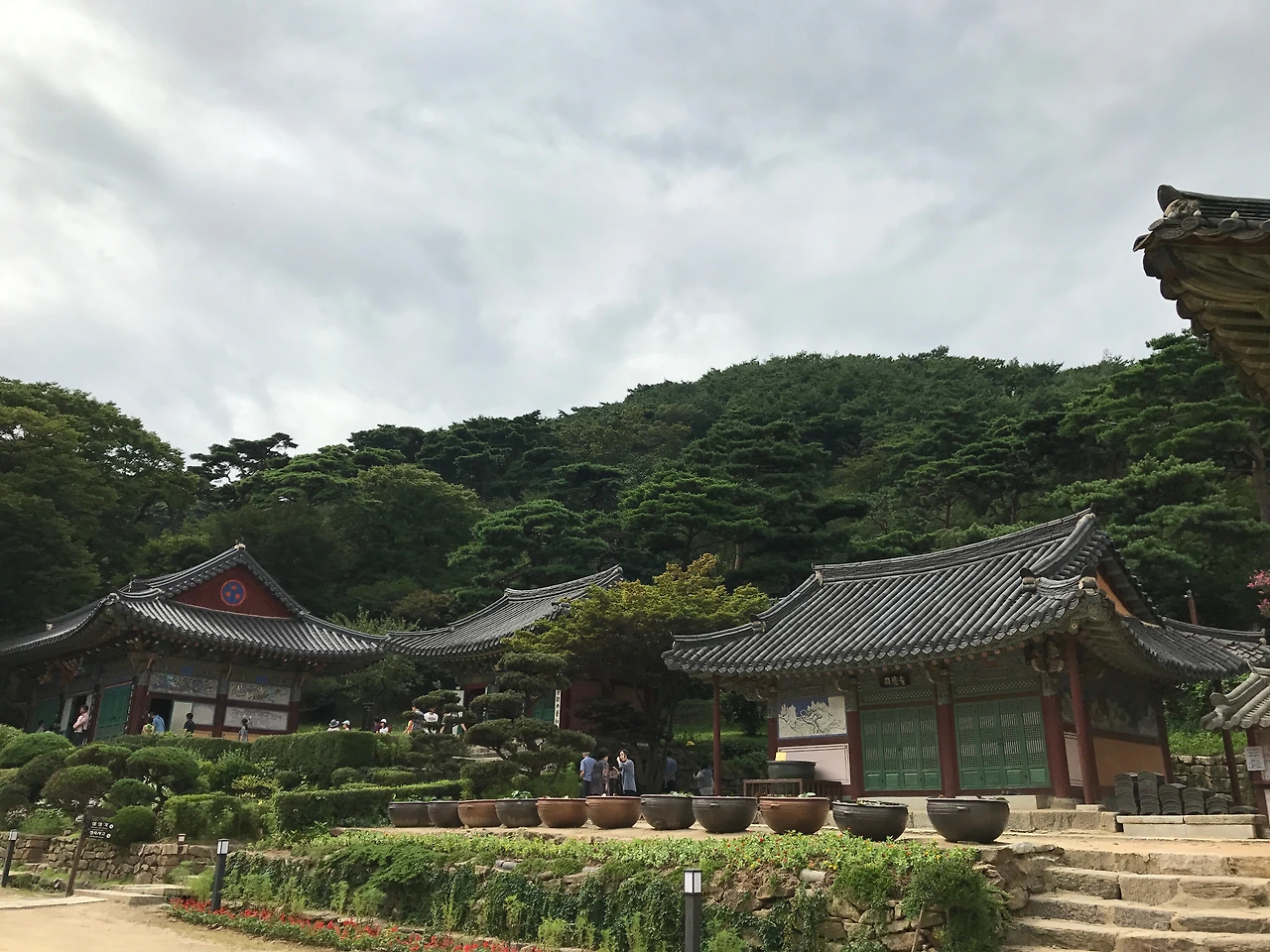좋은 공기 하면 시골이 떠오르지만 인천을 벗어나지 않은 곳에 가고 싶었다. 그렇게 검색하다가 나온 곳은 '전등사'. 일어나자마자 씻고 역으로 갔다. 인천이지만 멀다. 전등사까지 약 2시간 30분. 대중교통을 이용해서 더 멀게 느껴졌을 수도 있지만. 버스는 2시간 간격으로 1대만 다니는 그런 곳이었다. 도착하자마자 입구에 보이는 소나무가 너무 초록색이었다. 이렇게 초록색일 수 있나 싶을 정도로. 들어가기도 전에 소나무에 매료되었다. 주말이라 그런지 사람은 많았고 아침부터 흐린 날씨 때문에 비가 올 것 같았지만 비는 내리지 않았다. 바람이 조금 부는 날이었다. 대웅전을 보면서 산책로를 걷기도 하고 곳곳에 있는 벤치에 앉아 책을 보기도 했다. 잠시 책 내용을 머릿속으로 되새길 때, 지나가는 약 50대 후반 부부 인사를 몰래 엿들었다.