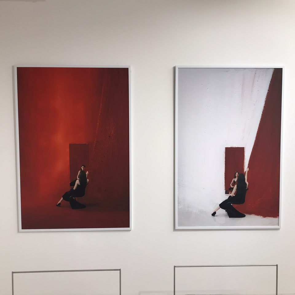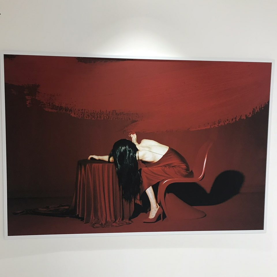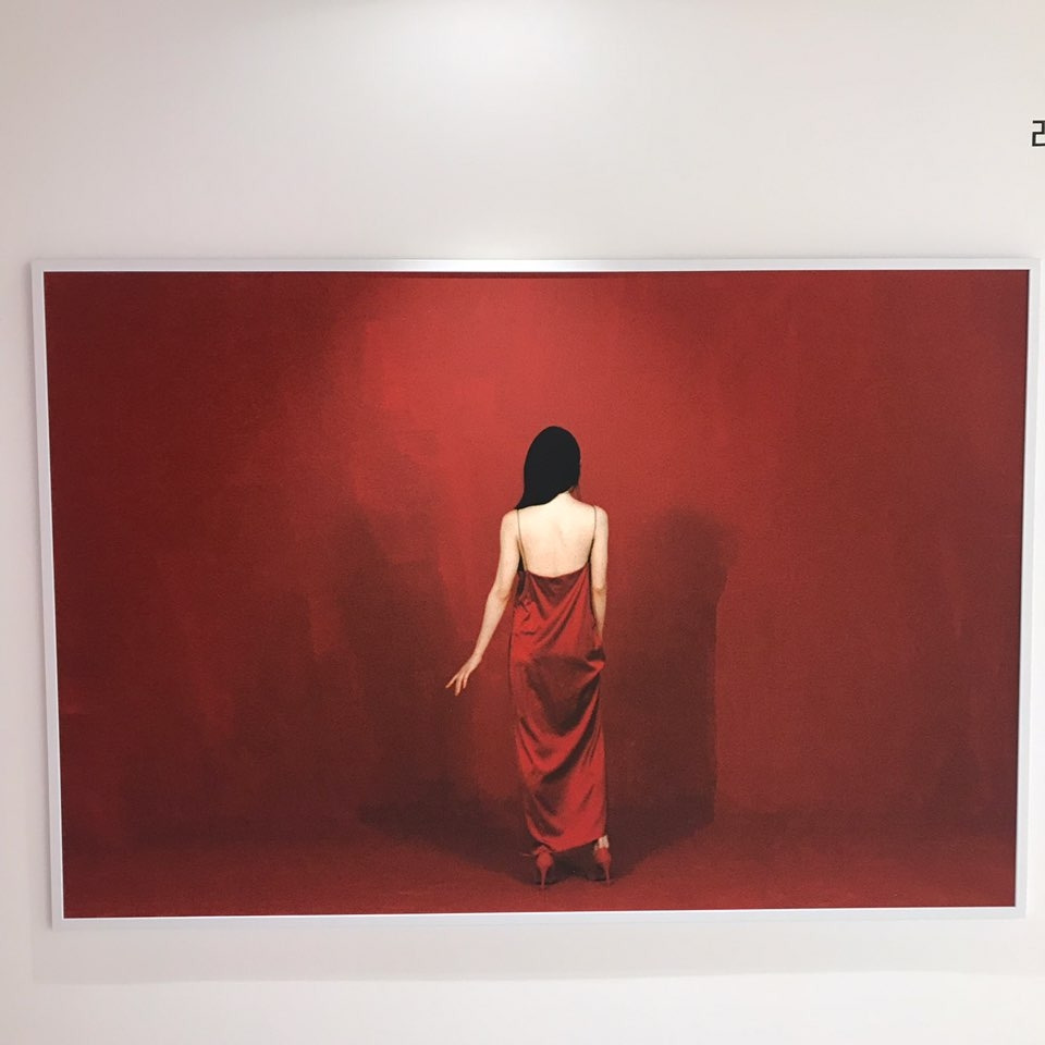 검은 머리, 살색 빼고는 온통 레드다. 레드에 집중되어 강렬하기도 하지만, 덩그러니 서있거나 앉아 있는 모습이 쓸쓸해 보이기도 하다. 레드에만 갇혀 있는 것 같기도 하고.