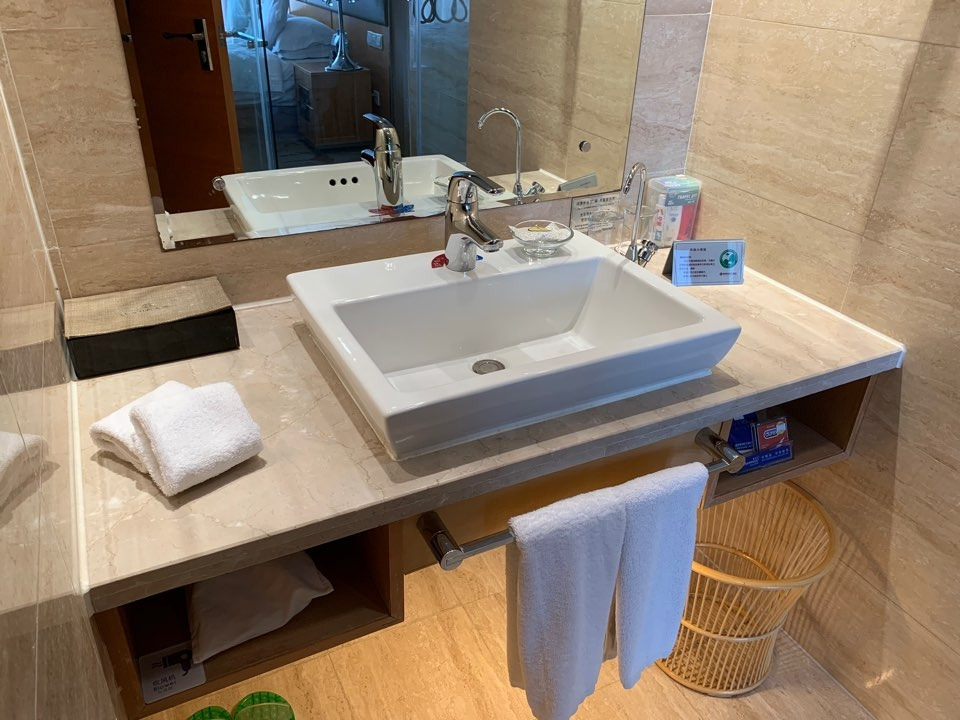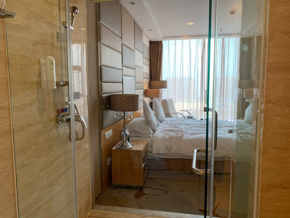 인터파크에서 예약한 바우처를 제출했고 여권과 보증금 200위안을 냈다. 그렇게 들어간 우리 호텔. 너무 좋다. 사진 찍고 난리 났는데 화장실이 투명 유리다. 다행히 블라인드가 있었는데 우린 투명 유리 볼 때 제일 신나 했다. 낙엽만 봐도 웃던 때는 지났다고 생각했는데 아직 아닌가 보다. 우린 호텔 방 중에서도 오션뷰 객실을 예약했다. 오션뷰는 맞긴 한데. 뭐랄까 서로에서 "우리 오션뷰 맞지?"를 묻게 되는 방이었다. 건물 뒤에 살짝 바다가 보이긴 하니까 오션뷰는 맞긴 하지. 부정할 수 없다. 오션뷰를 자랑하기 위해 bar 메뉴 보고 있는 설정샷을 찍었다. 근데 왜 이렇게 어둡지? 건물만 보인다.