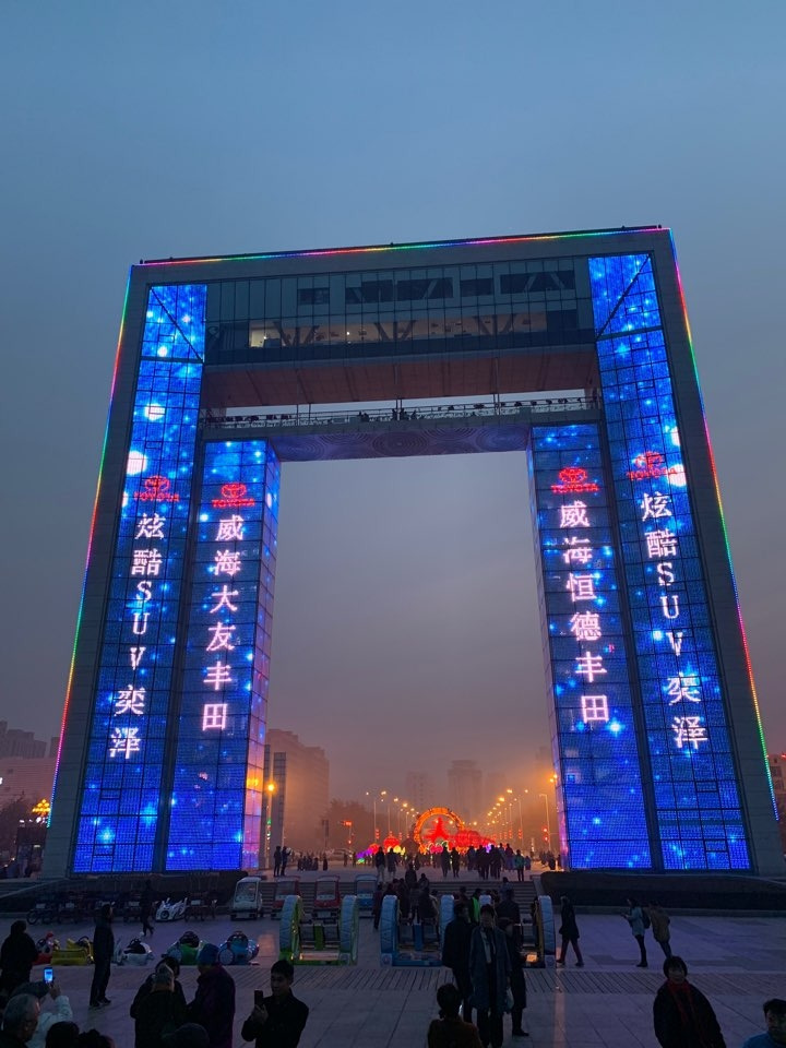 밥 먹고 KFC 아이스크림 먹으며 행복문으로 갔다. 걸어서 10분 밖에 걸리지 않았고 관광지라 사람이 많았다. 다들 '복'자가 적힌 판 위에 올라 뛰면서 사진 찍었다. 우린 복을 밟아야 되는 거 아니냐며 의문도 모른 채 같이 뛰었다. 나중에 웨이하이에 살았던 친구한테 물어봤다. "행복문에서 사람들이 뛰던데 왜 그런 거야?" "뛰어? 왜 뛰지?" 그때 사람들은 즐거워서 뛰었나 보다. 사람이 많아서 사진 찍을 때마다 숨은 우리 찾기 사진이 나왔다. 사진 속 빼꼼 나온 우리. 행복문에 가까이 가니 동그라미를 만들며 사진 찍는 사람이 있었다. 하트도 아니고 동그라미는 뭐냐고 했지만 우리도 동그라미를 그렸다. 뭔가 의미 있을 거야.