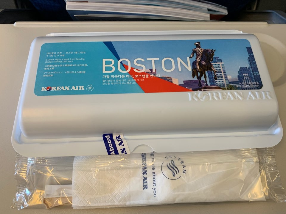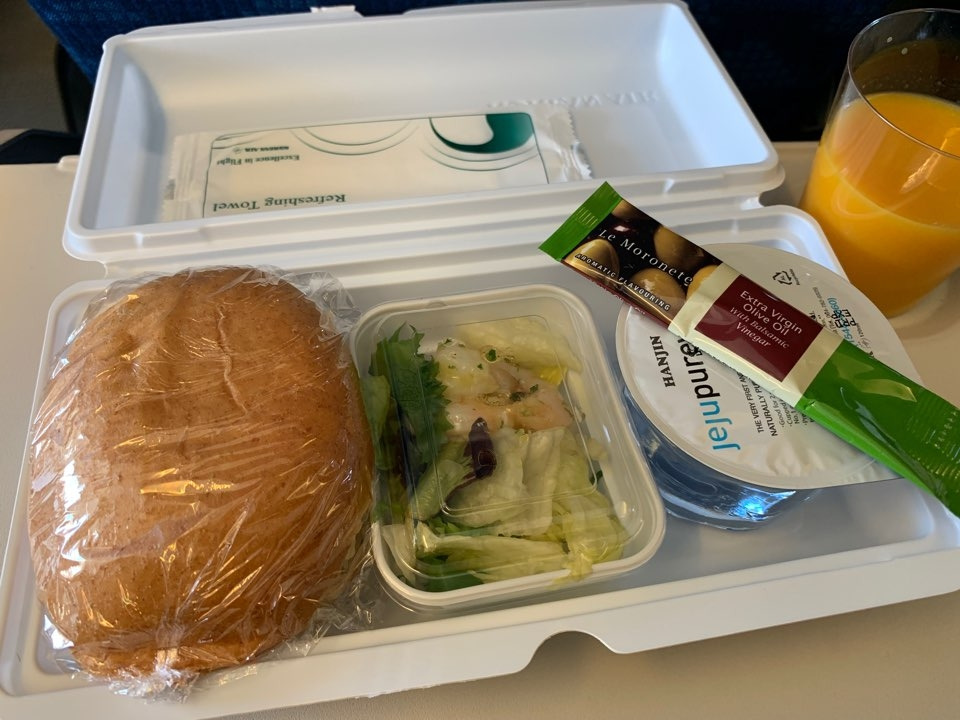미세먼지 때문에 약 30분 정도 지연 후 비행기가 움직였다. 비행기가 이륙할 때도 여행하는 기분은 아니었는데 왜인지 갑자기 설레었다. 기내식 때문인가. 샌드위치. 빵이 좀 뻑뻑했지만 배를 채우기 위해 열심히 먹었다. 그때 내 옆사람이 툭툭 치면서 "배고파?"라고 물었다. 그러면서 본인 샌드위치와 샐러드를 더 먹으라고 줬다. 내가 너무 열심히 먹었나. 당황도 잠시, 감사한 마음에 인사한 뒤 억지로 먹었고 옆 사람이 잠든 틈에 반을 버렸다. 그때 감사했어요.