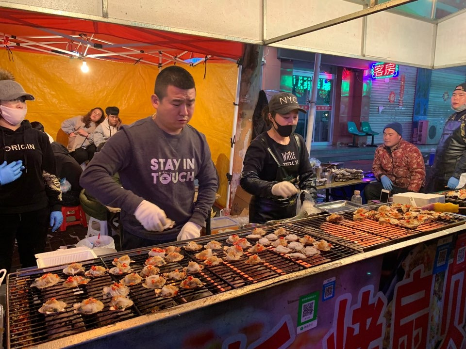 계속 먹고 싶었던 굴구이랑 가리비를 구매할 곳을 탐색했다. 곳곳에 많이 팔았지만 사람이 제일 많은 곳에 줄 서서 주문했다. 8개에 20위안. 기다리는데 조개 파편이 내 얼굴에 튀어서 화상 입었다. 아직도 따가워. 뭐 이리 운이 안 좋은 건지.