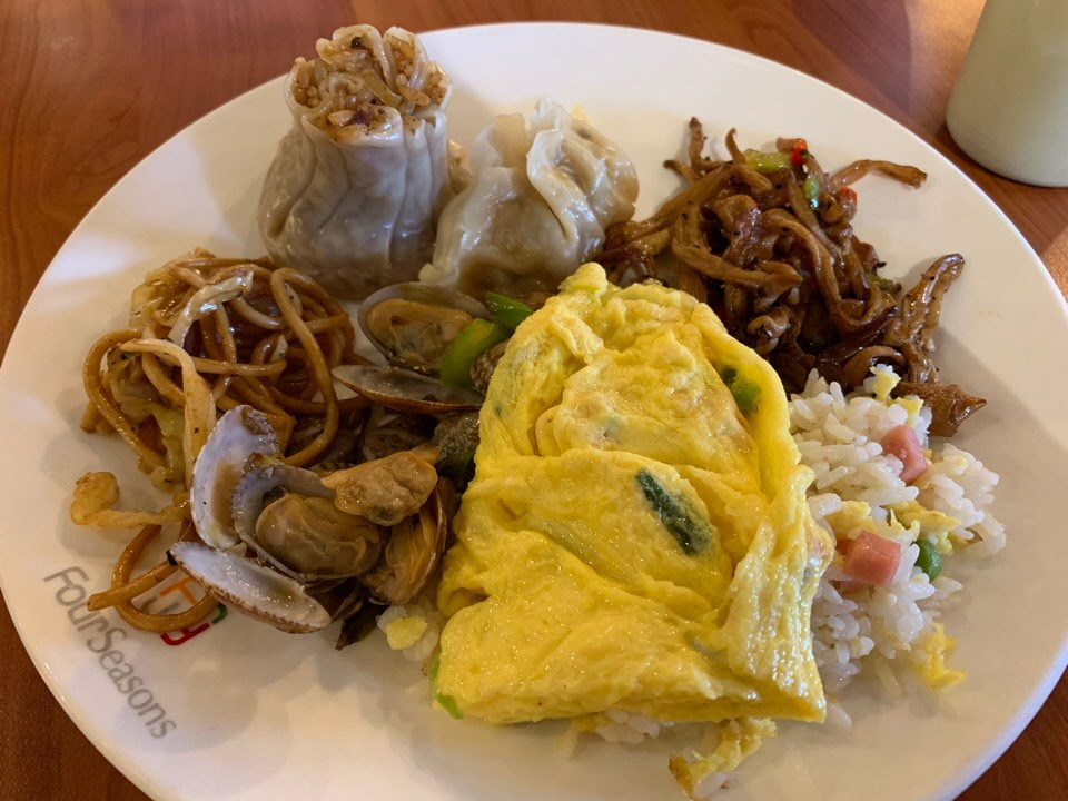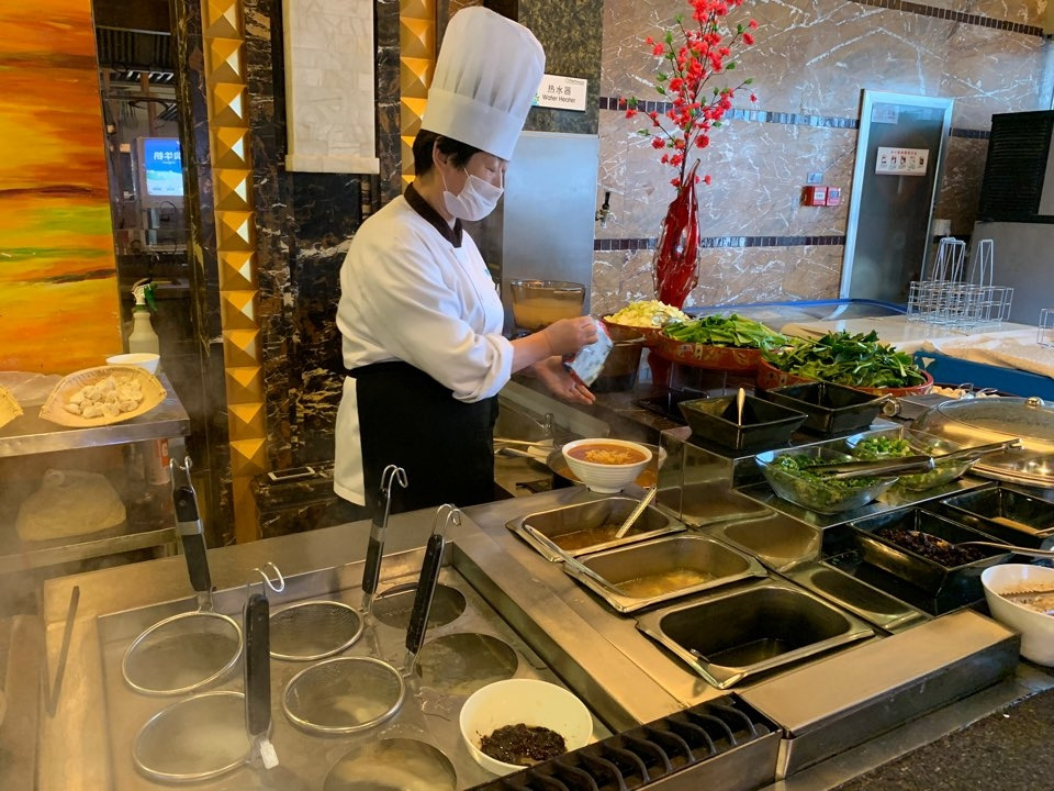 호텔은 역시 조식이지. 인터파크에서 예약할 때 조식 2명으로 신청했다. 조식은 한 명만 신청될 수도 있으니 잘 확인해야 한다. 방 키를 보여주고 본격적인 식사가 시작됐다. 생각보다 종류가 많았다. 밥, 파스타, 롤, 라면, 빵, 에그타르트 등. 아침을 많이 먹지 않는 편이라 위와 같이 먹고 디저트로 에그타르트랑 과일을 먹었다. 중국은 젓가락이 길다. 원래 젓가락을 잘 못하는데 길어서 자꾸만 음식을 흘렸다. 덕분에 따가운 직원분 시선이 느껴진다. 기분탓이길.