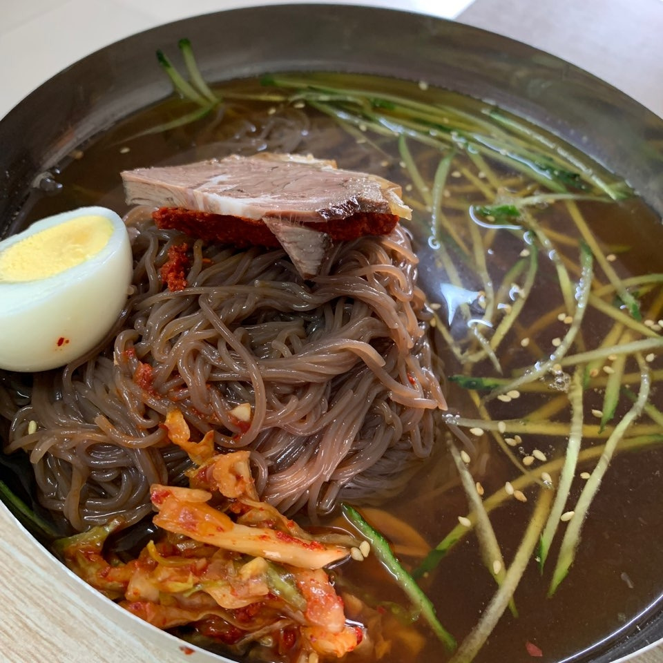 바다 보는 것도 좋아하지만 국제 해수욕장에 온 목적은 따로 있다. 랭면집 꿔바로우와 냉면을 먹기 위해! 하공대 뒤에 있는 랭면집은 학생들뿐만 아니라 관광객 사이에서도 유명한 맛집이다. 먹어보면 왜 사람들이 여기까지 와서 먹는지 알 것 같다. 소스가 뿌려져 있어도 바삭바삭하며 “와, 진짜 맛있다” 한마디만 내뱉고 아무 말 없이 먹게 된다. 한국에서도 계속 생각나는 맛. 이 글을 쓰는 내내 주영이와 꿔바로우 생각난다고 말하고 있다. 우리가 비행기를 조금 더 비싸게 주고 구매했으니 비행기가 저렴할 때 꿔바로우 먹으러 가자고 할 정도. 냉면과 바지락 볶음도 말이 필요 없다. 바지락 한 입 먹고 칭따오를 마셔야 하는지 고민할 때 꿔바로우가 나왔고 우린 결국 칭따오를 주문했다.
