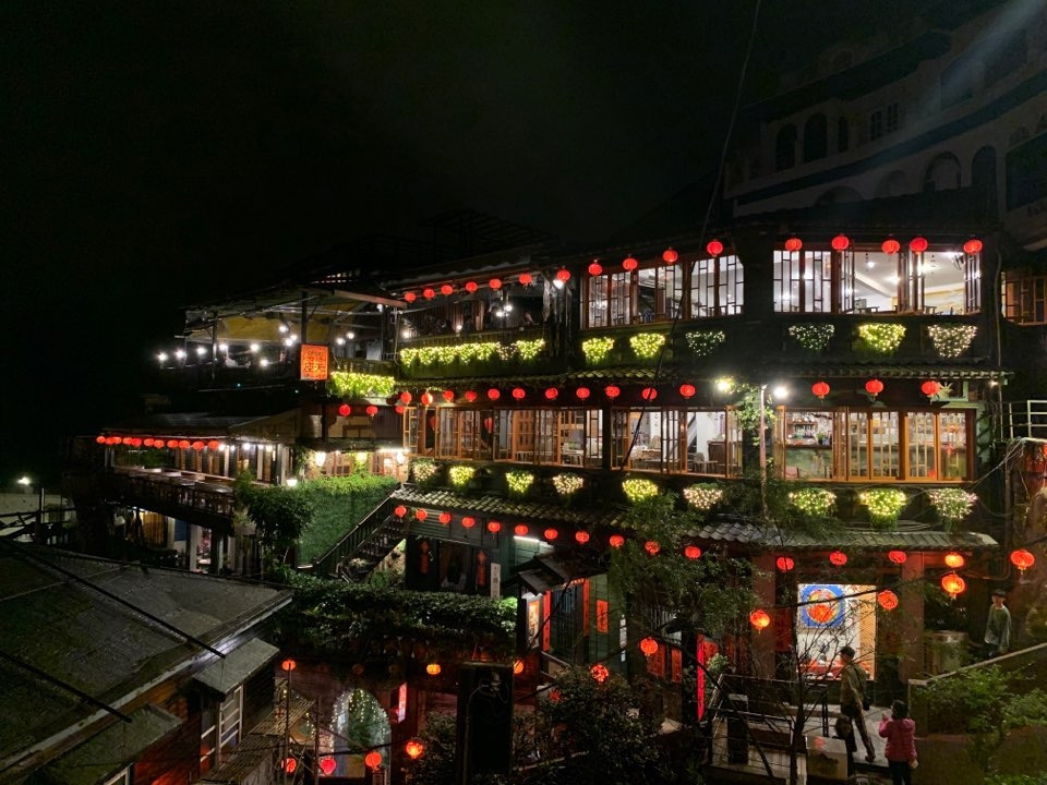 마지막으로 지우펀에 갔다. 미리 숙소를 예약한 덕분에 짐을 내려놓고, 골목을 걸어 다닐 수 있었다. 9시쯤 도착했던 것 같은데 이미 상점들은 문을 닫고 있었다. 문이 열린 곳에서 소시지를 먹고 숙소 사장님이 추천해준 골목으로 갔다. 영화 <샌과 치히로의 행방불명> 배경이 된 곳이었다. 실제로 보니 더 예쁘다. 감상할 때쯤 비가 와서 다시 길을 따라 내려갔지만.
