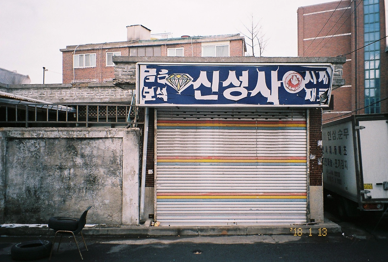 필름 카메라로 찍으면 더 옛스러움이 묻어날 것 같아서 좋아. 그래서 주로 간판이나 거리를 찍고 있어. 진짜 오래된 걸 수도 있고 콘셉트일지 모르지만, 그 옛스러움이 좋아. 우리 동네가 옛스러움이 잘 묻어있는 곳이야. 그래서 필름 카메라로 더 찍게 돼. 사진을 보면 옛날이나 지금이나 다르지 않을 것 같은 생각이 들어. 내가 한 집에 이사하면 10년씩 사는데, 어렸을 때 찍은 사진을 보니까 이사해도 가구나 벽지 같은 구조가 다르지 않은 거야. 그 사진을 보면서 엄마랑 너무 웃기다고 얘기했었어. 가구는 그대로인데 사람만 컸다고. 나중에 사진을 보면 웃으면서 이야기할 수 있어서 좋은 것 같아.